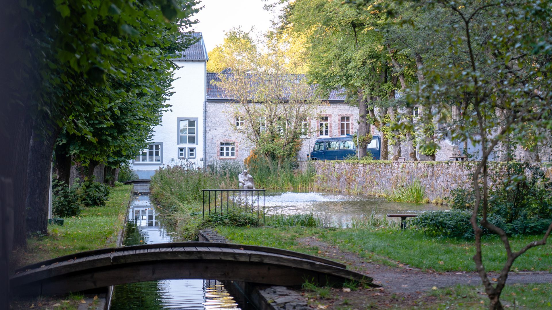 Der Abteigarten in Kornelimünster, Aachen, wird durch den historischen Mühlenkanal geprägt, der an die bedeutende Tuchindustrie der Region erinnert. Am Ende des Gartens steht die frühere Textilfabrik Roland. Im Teich des Gartens befindet sich die Skulptur "Große Badende" von Rolf Kretzschmar, die ein markantes Kunstwerk darstellt.