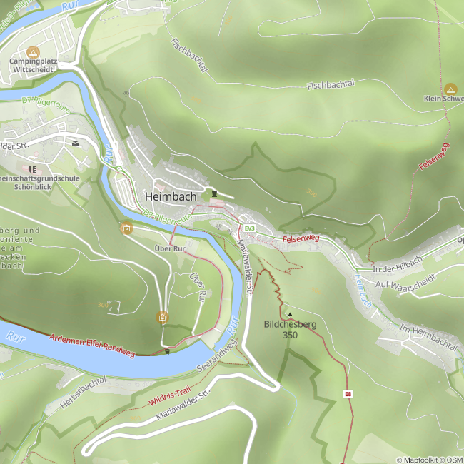 Die Burg Hengebach wurde im 11. Jahrhundert auf einem Grauwackefelsen erbaut. Sie zählt zu den ältesten Bauwerken in der Eifel. Im Lauf der Jahrhunderte durchlebte das historische Gemäuer eine wechselvolle Geschichte. Verschiedene Herrschaften lebten und regierten einst auf der Festung. Der Löwe des Jülicher Grafengeschlechts ziert immer noch das Stadtwappen.Die Hofräume, Wehrgang und Burgfried sind ganzjährig kostenlos zugänglich.Auf der abends beleuchteten Burg befinden sich seit 2009 die "Internationale Kunstakademie Heimbach/Eifel".
