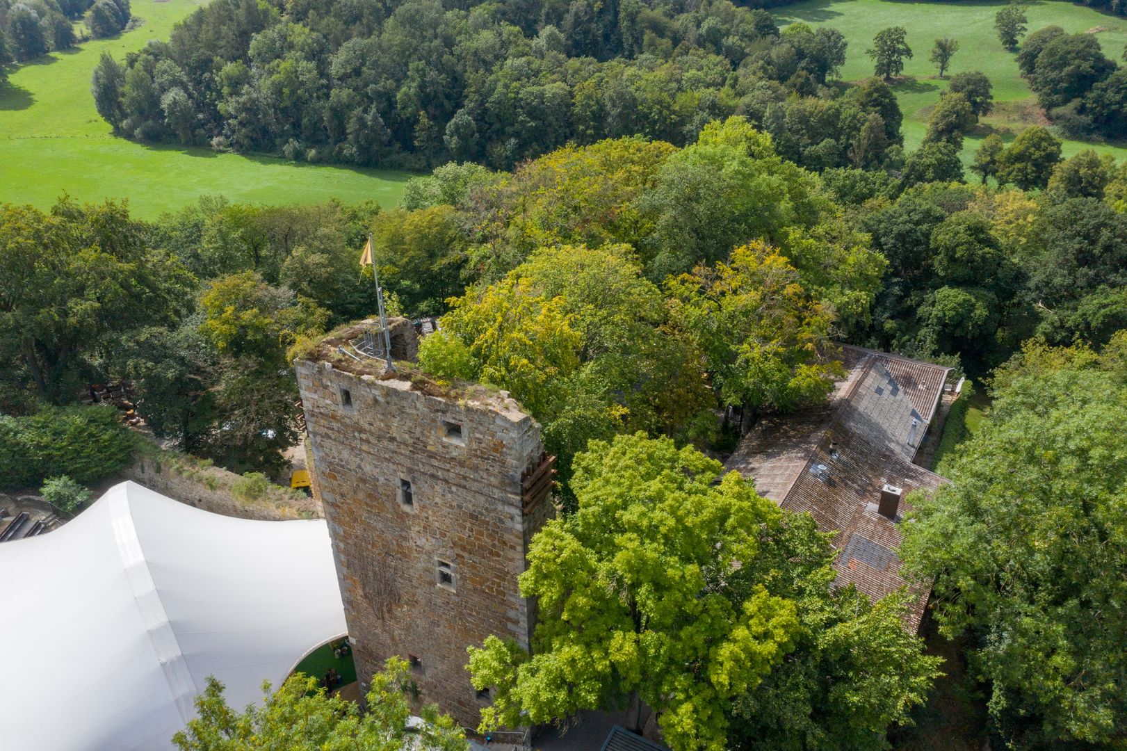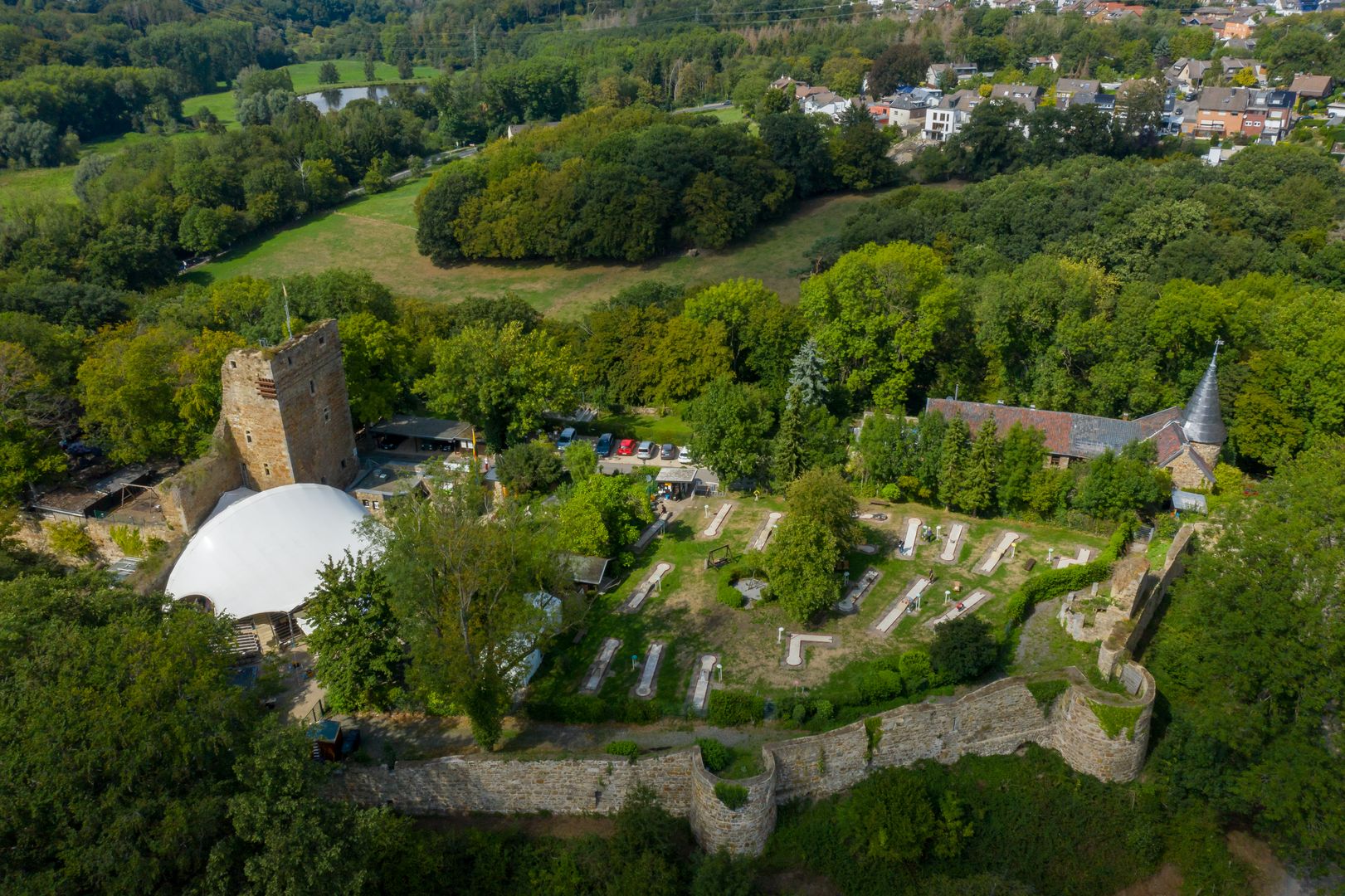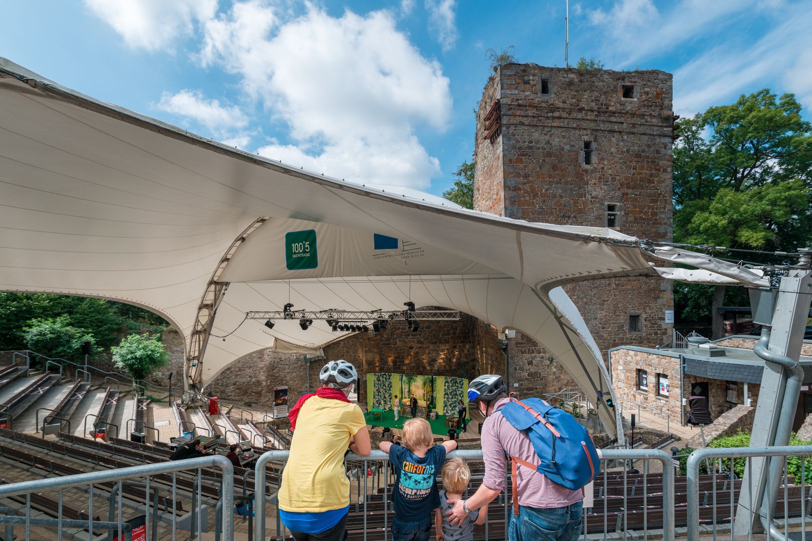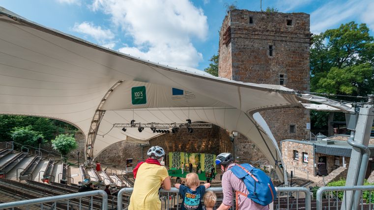 Die Burg Wilhelmstein wurde um 1300 als Grenzfeste vom Grafen Wilhelm von Jülich errichtet. Im Mittelalter verlief von hier ca. 1 km südlich die Grenze des Aachener Reiches, welches immer direkt dem Reichsoberhaupt, dem Kaiser unterstand. Vom Ortsteil Bardenberg aus gelangt man heute durch eine schattige Allee zunächst zur noch erhaltenen Vorburg mit Rundturm - vormals Kerker - und gotischem Torbogen. Die Vorburg war ursprünglich durch einen Wassergraben geschützt. Der Innenbereich der Burg, der durch mächtige Bruchsteinmauern mit Verteidigungsbastion geschützt ist, war als Fliehburg angelegt. In Kriegs- und Notzeiten konnte die umwohnende Bevölkerung von den Lehnshöfen und aus dem Ort Bardenberg dort Schutz finden. Heute beherbergt die Burg Wilhelmstein neben dem Freilichttheater auch ein beliebtes Restaurant, das - ebenso wie der Ausschank im Theater - vom Eigentümer des Geländes und nicht vom Theaterbetrieb geführt wird.