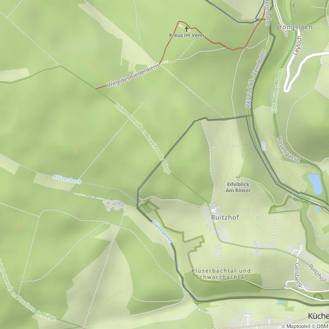 "Ruitzhof" gehört zu Monschau-Kalterherberg und liegt auf 570 Metern über dem Meeresspiegel. Seit dem 2. Weltkrieg ist der Weiler, der erstmals 1205 urkundlich erwähnt wird, eine deutsche Exklave: Die Gehöfte sind ringsherum von belgischem Gebiet umgeben. Früher gehörte Ruitzhof zum Kloster Reichenstein. Die Häuser auf Ruitzhof sind vielfach noch von den weit bekannten Schutzhecken umgeben, die schon in dem Roman von Clara Viebig "Das Kreuz im Venn" sehr beeindruckend beschrieben wurden.