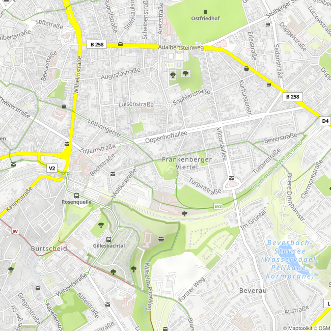 Vor allem bei schönem Wetter ist der Frankenberger Park Anziehungspunkt für junge Familien und Menschen, die ihre Zeit gerne im Freien verbringen. Für eine anstehende Prüfung lernen, Eis essen oder einfach die Seele baumeln lassen. Nicht nur die vielen Studenten in Aachen suchen sich ein schattiges Plätzchen unter einem der vielen Bäumen, die den Park im beliebten Szeneviertel Aachens säumen.