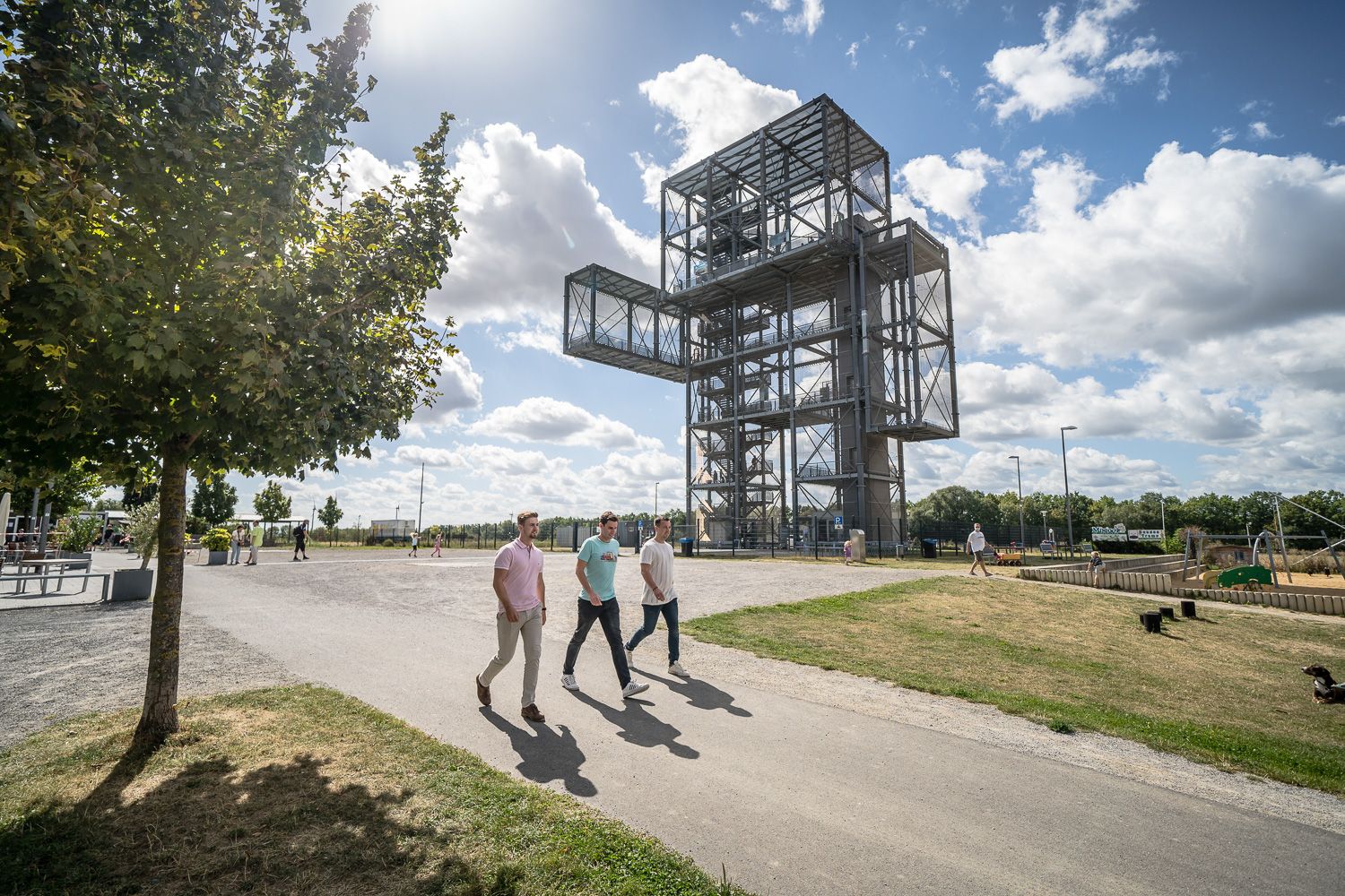 Der Indemann ist das stählerne Wahrzeichen des indelands. Von seiner obersten Aussichtsplattform genießt man einen phantastischen Rundumblick auf eine Region, die sich im stetigen Wandel befindet.