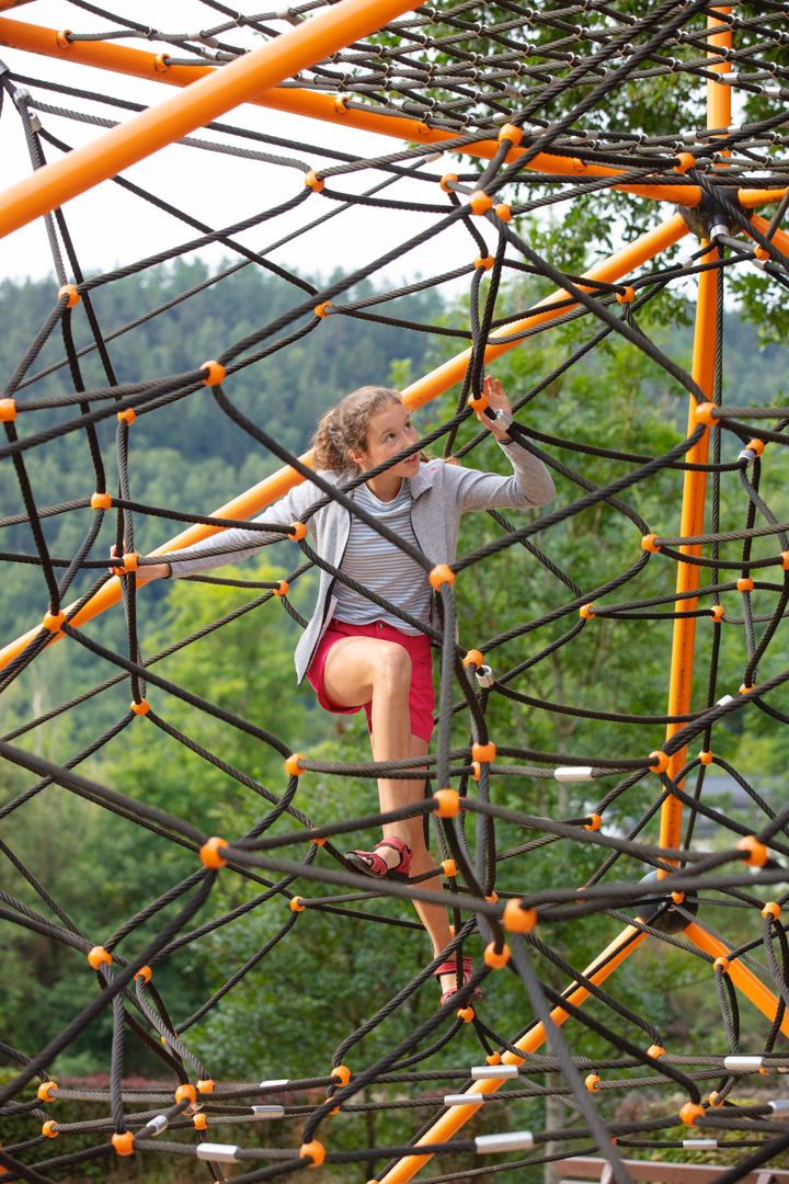 Kletterspaß PUR! Die große Kletterpyramide ist das Highlight auf dem Spielplatz am Seeufer in Simmerath-Einruhr. Jeder kleine und große Kletteraffe kann sich hier austoben.