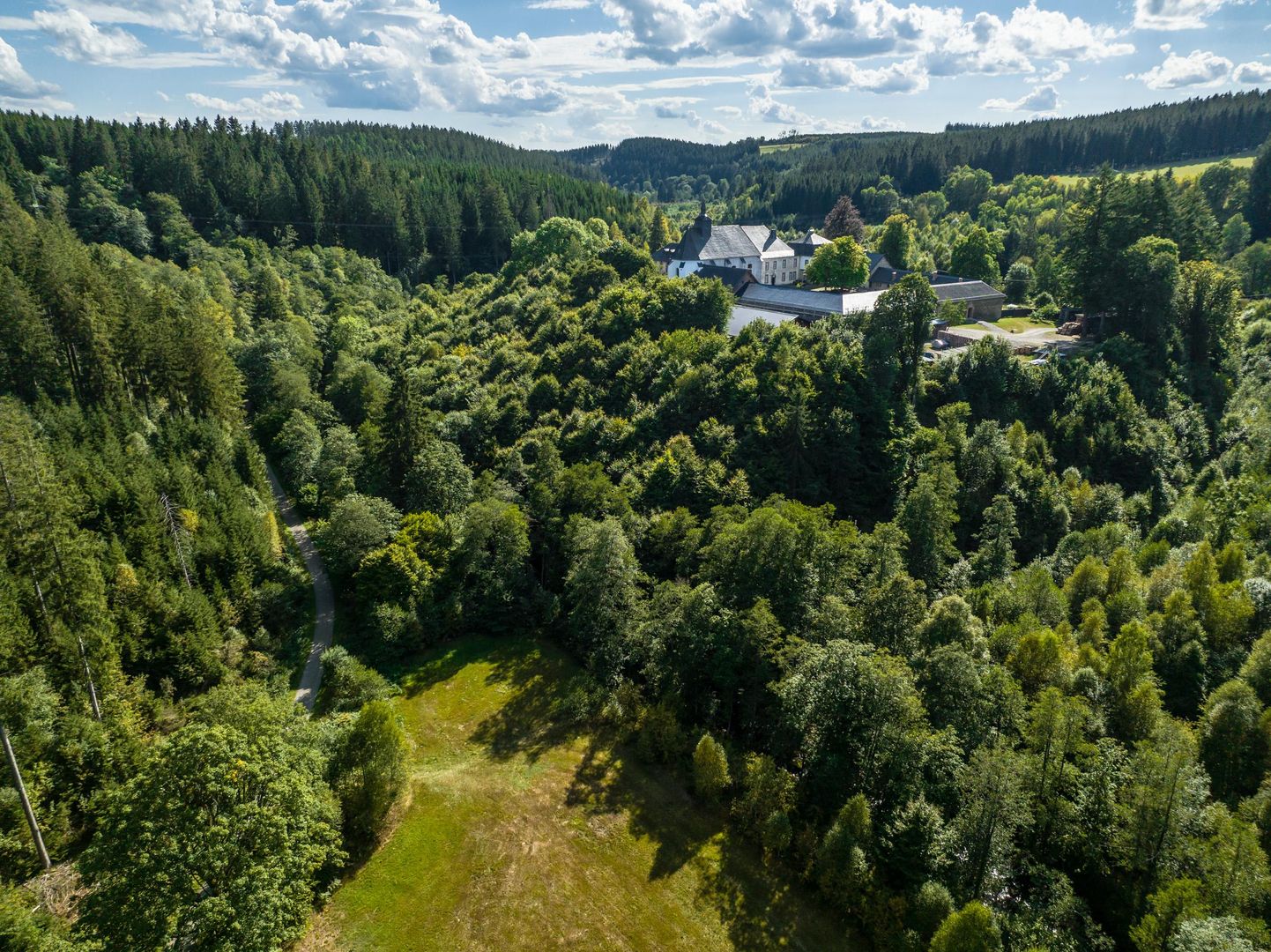 Das ehemalige Prämonstratenser-Kloster aus dem 12. Jahrhundert liegt in der herben Eifellandschaft, mitten im Naturpark des „Hohen Venn“, unmittelbar an der deutsch-belgischen Grenze. Die Anlage, zu der über 32 Hektar Wald und ein Fischteich gehören, liegt auf einem Felsplateau im Mündungswinkel der Rur, die sich im Tal zwischen Kalterherberg und Eschweide dahin schlängelt, und dem Ermesbach. Bis zum malerischen Städtchen Monschau sind es 7 km. Im Jahre 1136 schenkten die Herzöge von Limburg ihre uralte Burg Richvinstinne (Reichenstein) dem Prämonstratenserorden, der dort einen Konvent errichtete. Das Kloster war Zeuge einer wechselvollen Geschichte, während der sich die Mönche von Reichenstein 600 Jahre lang durch ihre Seelsorge, Schulbildung und Gastfreundschaft als 'Apostel' des Monschauer Landes erwiesen haben. Nachdem das Kloster 1543 durch Landsknechte zerstört worden war, erfolgte nach und nach der Wiederaufbau, der aber erst Ende des 17.Jhd. fertiggestellt wurde (die Maueranker der Klosterkirche nennen das Jahr 1693). Etwas später, im Jahre 1714, wurde Reichenstein zur Propstei erhoben und genoß von da an eine weitgehende Unabhängigkeit vom Mutterkloster Steinfeld. Ende des 18.Jhd. gehörten 28 Chorherren zum Konvent, von denen sich jedoch nur 11 dort aufhielten, während die übrigen als Seelsorger auf auswärtigen Pfarrstellen eingesetzt waren. Dies veranschaulicht die zentrale Bedeutung, die dieses Kloster für das christliche Leben im Monschauer Land hatte. 1950 Die Luftaufnahme der 1950er Jahre erlaubt eine umfassende Aufsicht auf den Gebäudekomplex des Vierseithofes In Folge der französischen Revolution wurden 1802 durch Napoleon alle Klöster auf der linken Rheinseite aufgelöst. Auch Reichenstein ereilte dieses Schicksal, die Mönche wurden vertrieben und das Anwesen versteigert und fortan als landwirtschaftlicher Betrieb genutzt. So blieb es 200 Jahre lang. Im September 2008 übernahm dann das der Priesterbruderschaft St. Pius X. verbundene französische Kloster Notre-Dame de Bellaigue das Gut Reichenstein, um dort ein Kloster nach der Benediktsregel einzurichten.