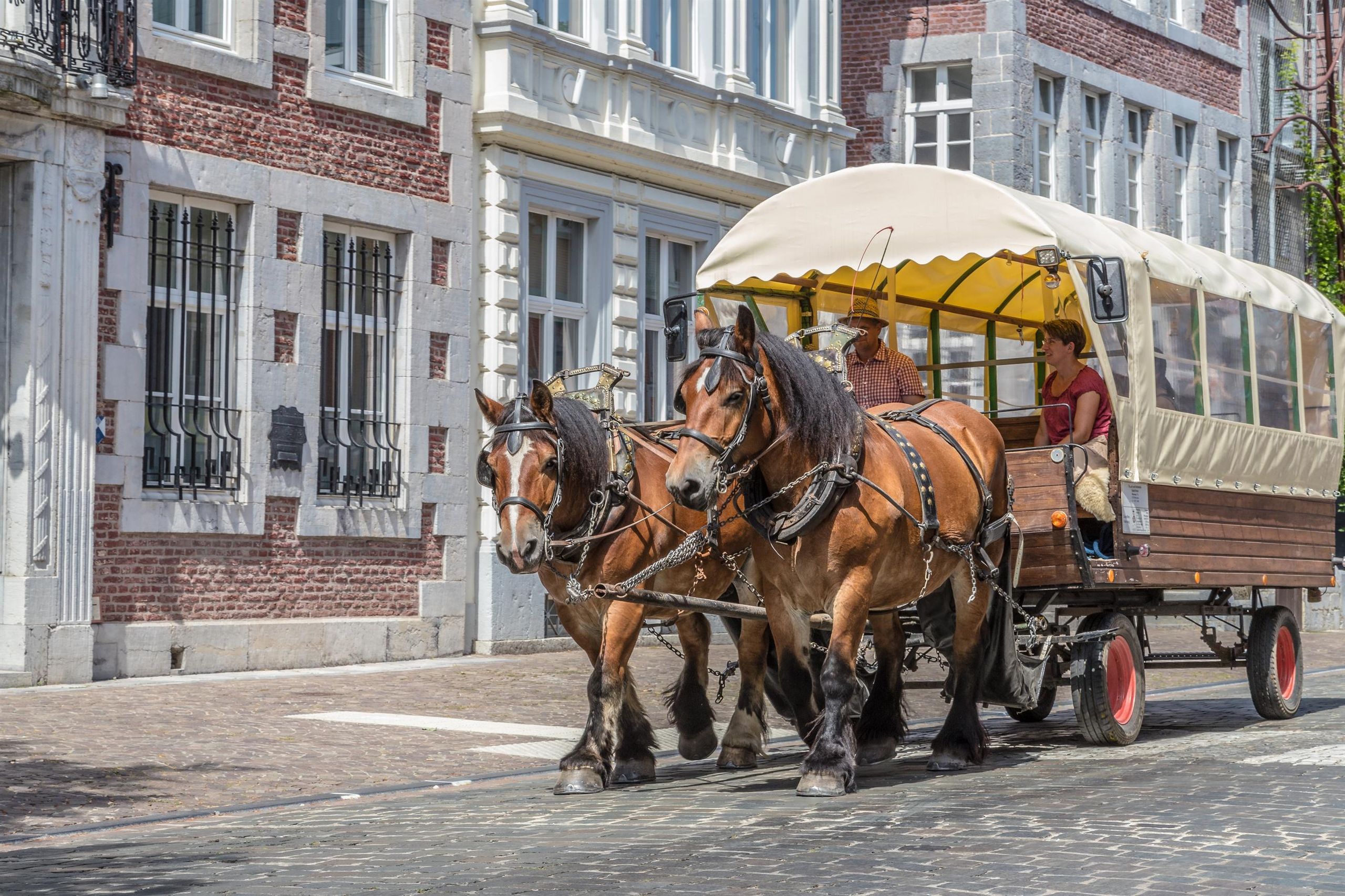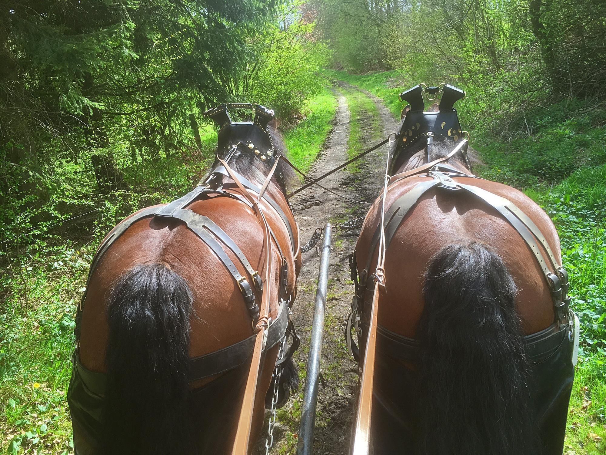 Für die Touren stehen vier Kaltblutpferde, ein Planwagen und verschiedene Kutschen zur Verfügung.
