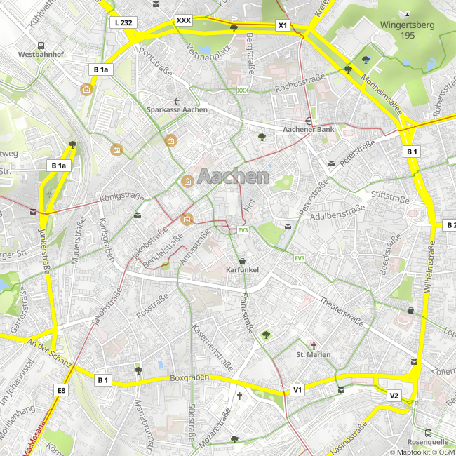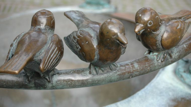 Der Vogelbrunnen auf dem kleinen Münsterplatz wird auf Grund seiner kleinen Spatzen von den Aachenern liebevoll auch „Möschebrunnen“ genannt, da Spatzen im Aachener Dialekt "Mösche" heißen. 1978 von Bonifatius Stirnberg geschaffen, ist er einer der wenigen Trinkbrunnen in der Aachener Innenstadt.