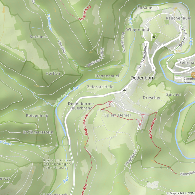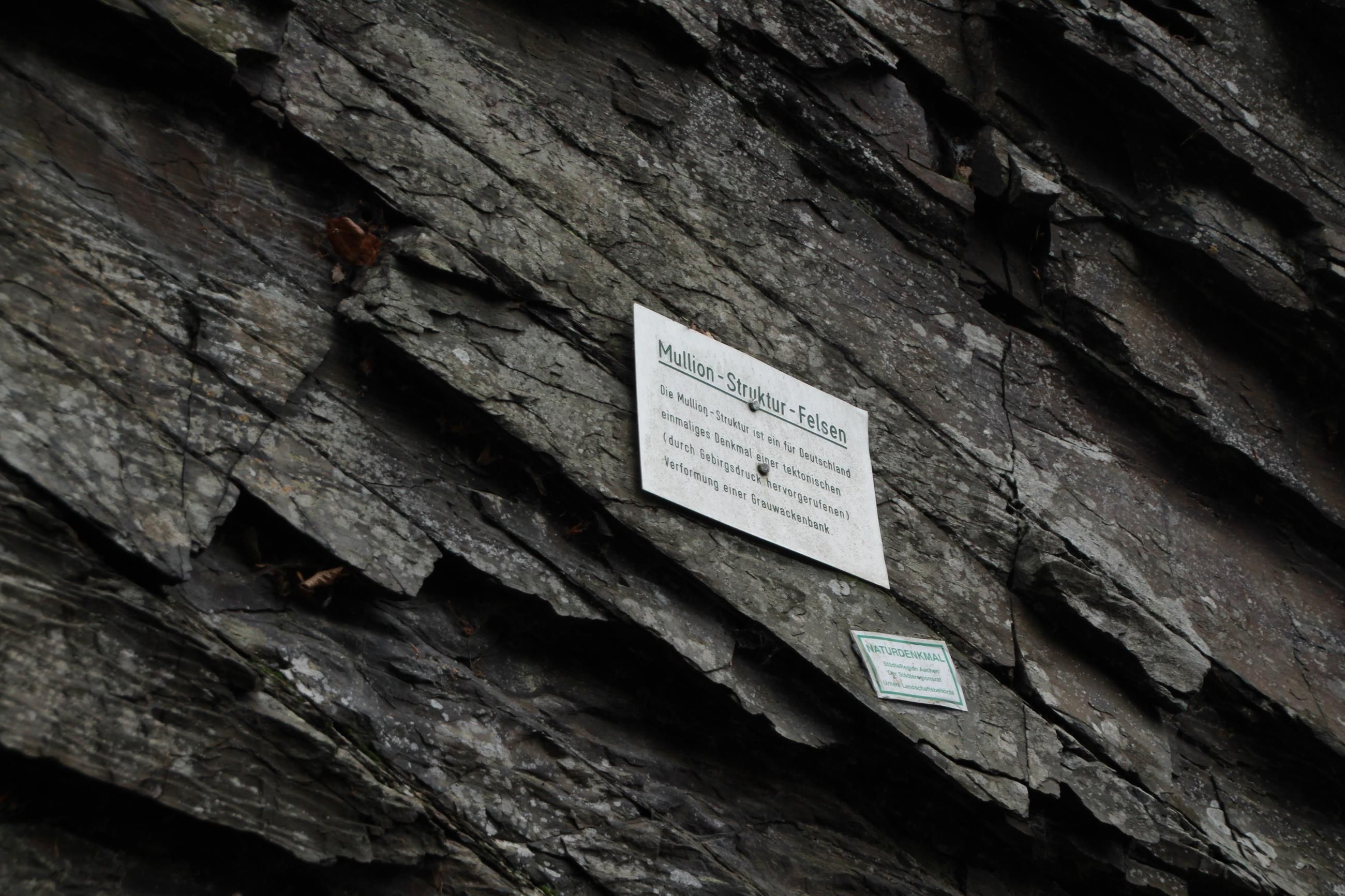 Wer sich aus östlicher Richtung der Ortschaft Dedenborn in der Gemeinde Simmerath nähert, erkennt sofort, dass dieser Ort etwas ganz Besonderes ist. Kühn erstreckt sich der Felsgrat oberhalb der Rur. Im Jahre 1952 machte der Landesgeologe Dr. Wolfgang Schmidt vom Geologischen Landesamt Nordrhein-Westfalen in Krefeld, bei geologischen Kartierungsarbeiten des Messtischblattes Schleiden eine erstaunliche Entdeckung. Zufällig fand er einen Felsen, der eine sogenannte Mullion-Struktur in den Schiefern der Rurberger Schichten, am Süd-West-Ausgang des Dorfes Dedenborn aufwies. Dabei handelte es sich um eine einzigartige tektonische Struktur, die in dieser Ausprägung im ganzen Rheinischen Schiefergebirge sonst nicht mehr angetroffen wird. Sie besteht aus der Zerlegung einer Grauwacken-Bank in parallele Wülste, die auf einer steilstehenden Fels-Wand übereinanderliegen. In Deutschland ist diese Struktur bisher noch nie beschrieben worden. Sie wurde erstmals in England entdeckt und ist dort unter der Bezeichnung "Mullion-Struktur" ins Schrifttum übergegangen (mullion = Bündel von Pfeilern an gotischen Kirchenfenstern). Es handelt sich mithin um ein für Deutschland einmaliges Denkmal einer tektonisch (=durch Gebirgsdruck hervorgerufenen) Verformung einer Grauwacken-Bank.