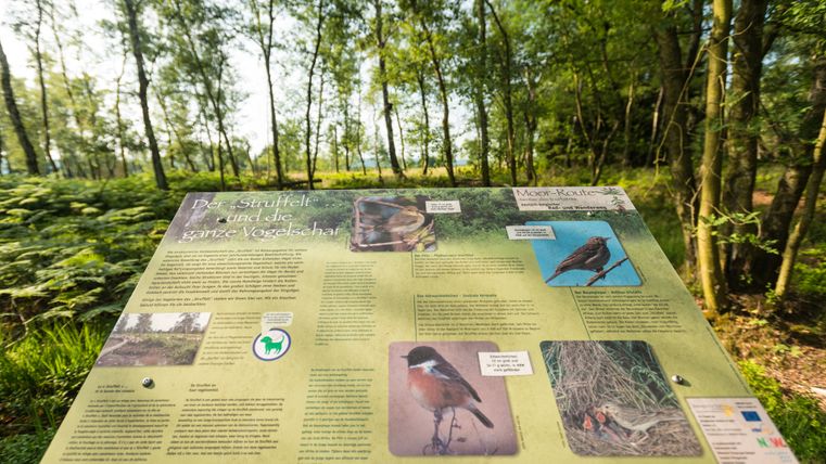 Typisch für den Struffelt ist das Pfeifengras. Die langen Halme mit den violettgrauen Ähren wurden früher als Pfeifenputzer benutzt, da die knotenfreien Halme beim Durchziehen nicht im Pfeifenhals stecken bleiben. Holzstege sorgen dafür, dass das auf dem Berg gelegene idyllische Hochmoor trockenen Fußes durchquert werden kann, ohne dabei die seltenen Pflanzen- und Tierarten zu schädigen.