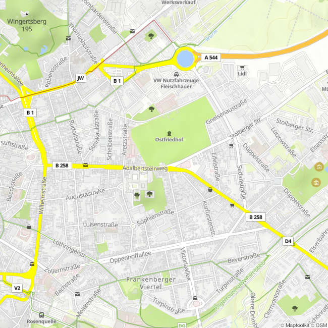 Außerhalb der früheren Stadtgrenzen Aachens wurde 1803 der Ostfriedhof als katholischer Friedhof eingesegnet. Mausoleen und Familiengrabstätten bekannter Aachener bilden mit Skulpturen und Kreuzanlagen einen besonderen Ort der Erinnerung. Heute werden hier Führungen von dem ortsansässigen Förderverein angeboten.