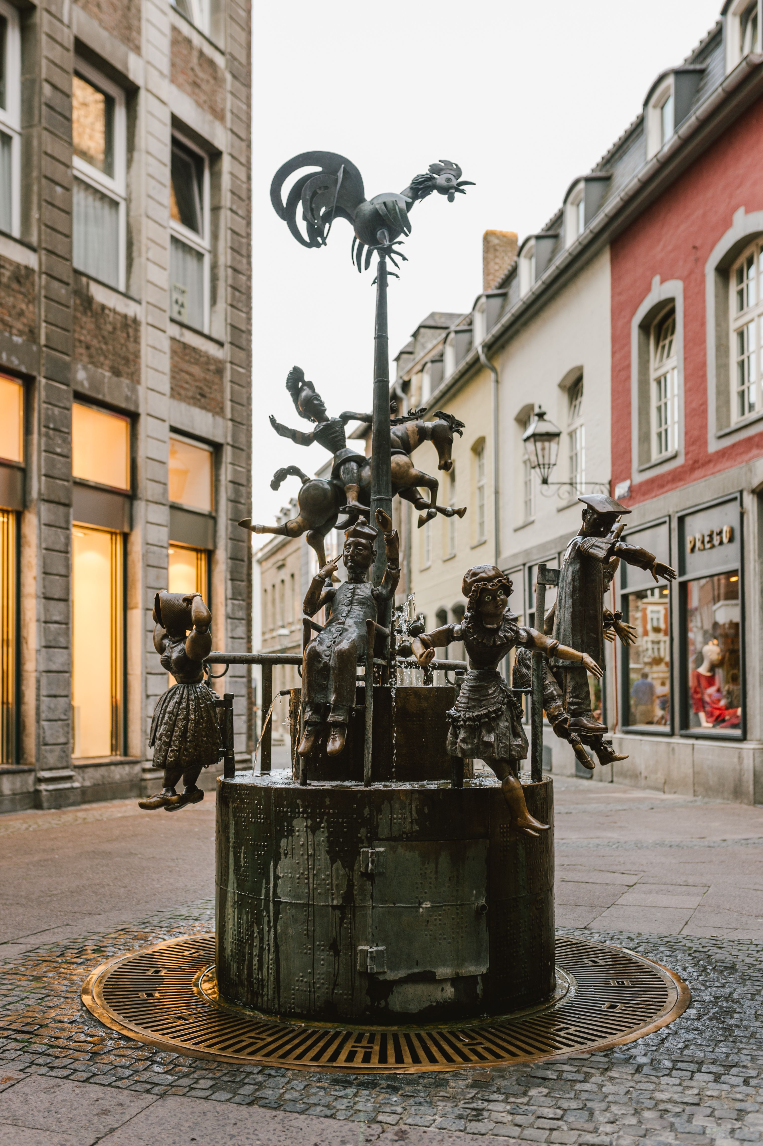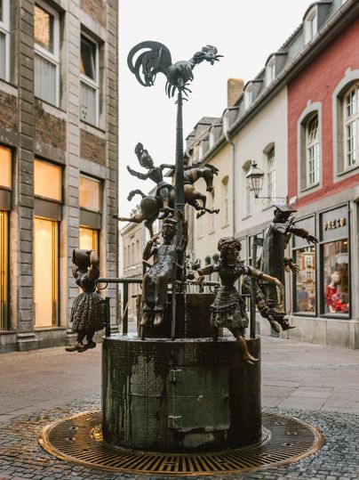 Der Puppenbrunnen zeigt die unterschiedlichsten aber typischen Aachener Figuren und Gesichter. Egal ob Bischof, Professor, Stadtmusikanten, Pferdesport, Clown oder Modepüppchen, die beweglichen Figuren erzählen viel über die Stadt und ihre Bewohner.