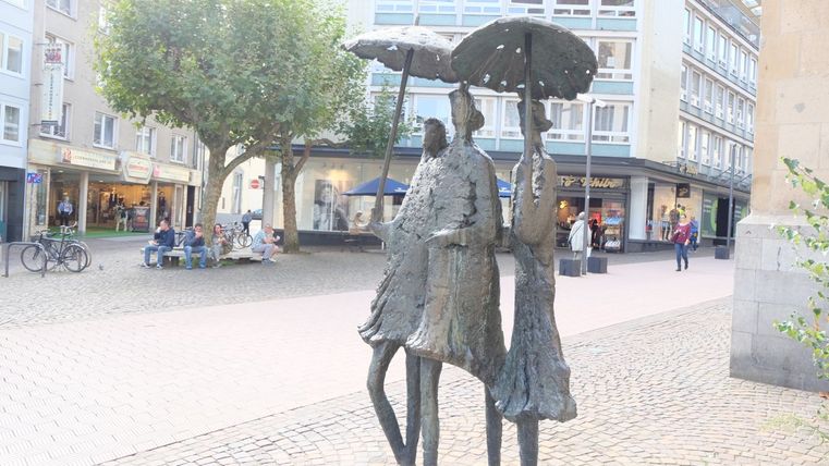 Der Bildhauer Heinz Tobolla hat mit den drei Damen mit Regenschirm dem Gerücht des ewig schlechten Wetters in Aachen ein Denkmal gesetzt. Da Aachen in einem Talkessel liegt, soll es hier besonders häufig regnen. Wissenschaftlich bewiesen ist das natürlich nicht!