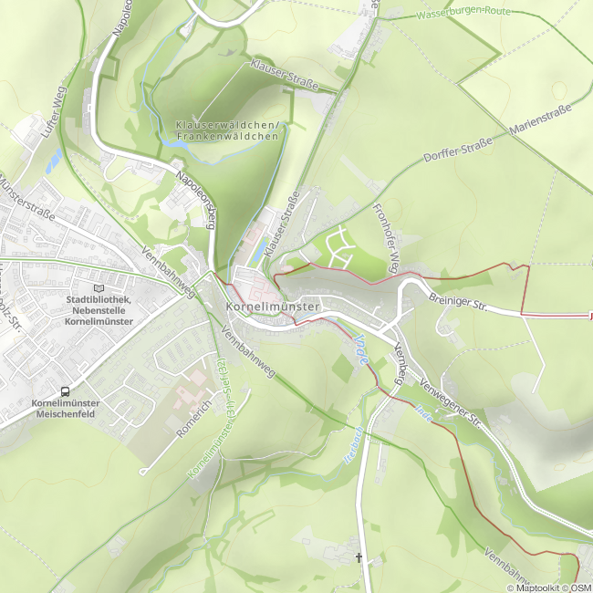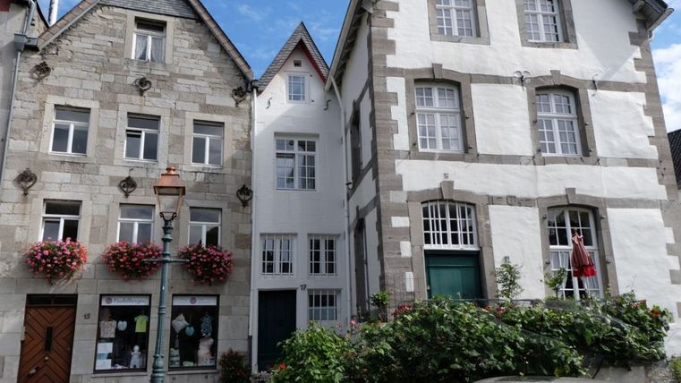 Am Benediktusplatz, der sich direkt an den Korneliusmarkt anschließt, befindet sich das schmalste Haus Kornelimünsters eingebettet in die umliegenden Häuser.