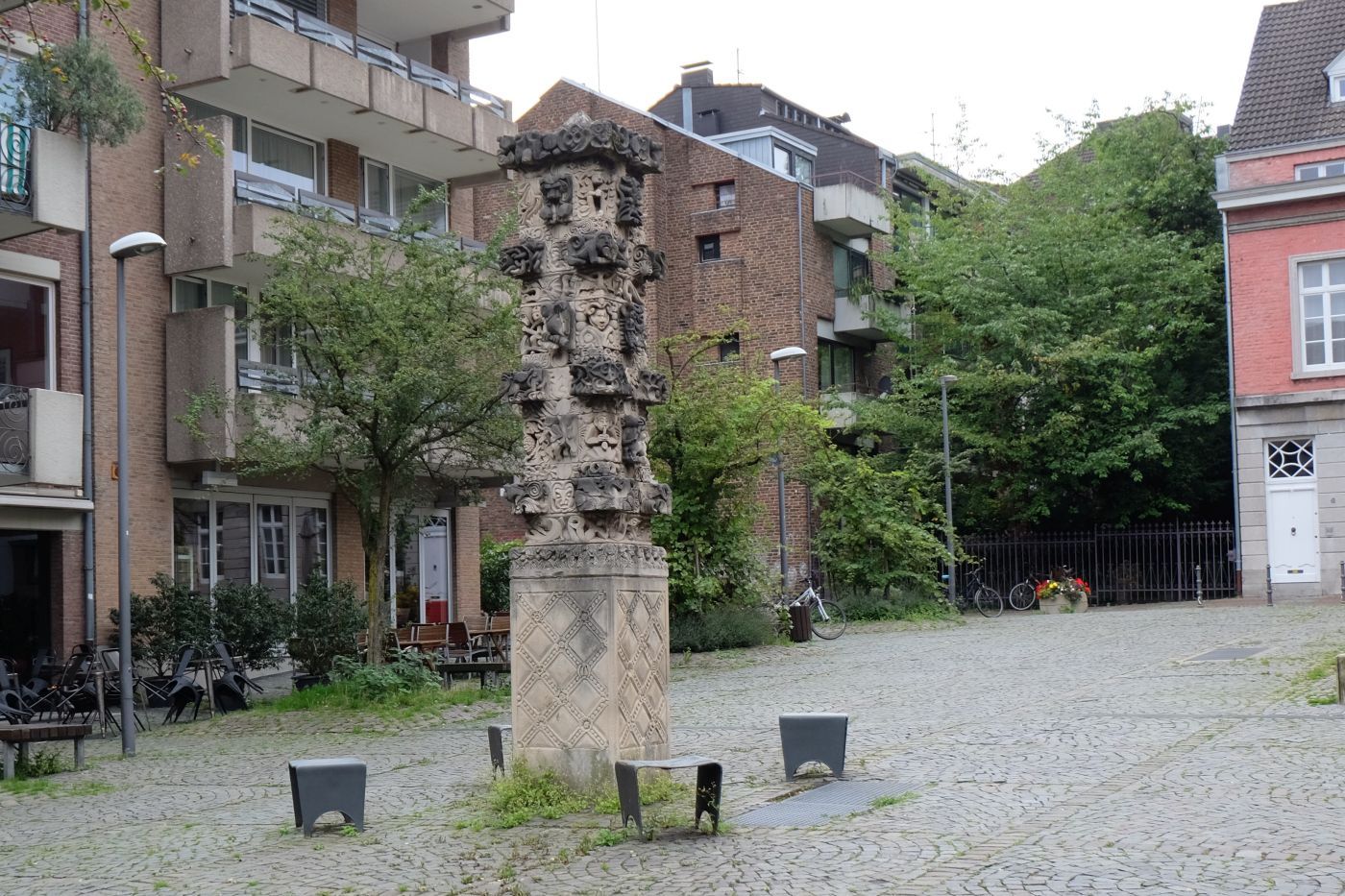 Die RWTH Aachen ist vor allem als technische Hochschule bekannt. Am Augustinerplatz befindet sich jedoch eine bemerkenswerte Skulptur, die 1971 von Studierenden des Lehrstuhls für Bildhauerei unter der Leitung von Prof. E. Hillebrand geschaffen wurde. Diese Stele, bestehend aus 87 Steinen, thematisiert die "Dritte Welt" und beeindruckt durch zahlreiche filigrane Details, die zum Nachdenken anregen.