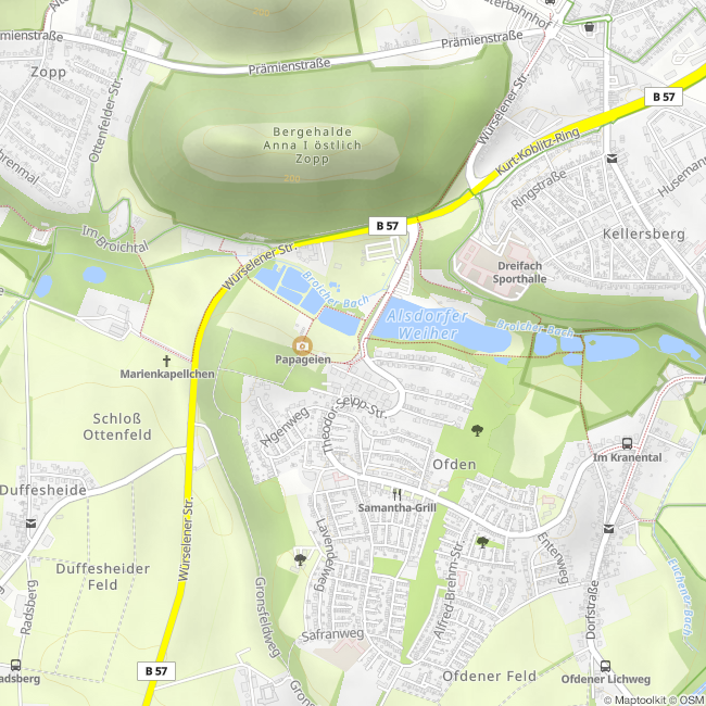 Der Tierpark Alsdorfer Weiher liegt mitten im Naherholungsgebiet Broichbachtal. Auf einer Fläche von mehr als 20 ha leben ca. 300 Tiere bestehend aus 30 überwiegend heimischen Tierarten.Die gesamte Fläche des Tierparks und das angeschlossene Freizeitgelände, inklusive der Gewässer, erstrecken sich auf einem Gelände von mehr als 30 ha.