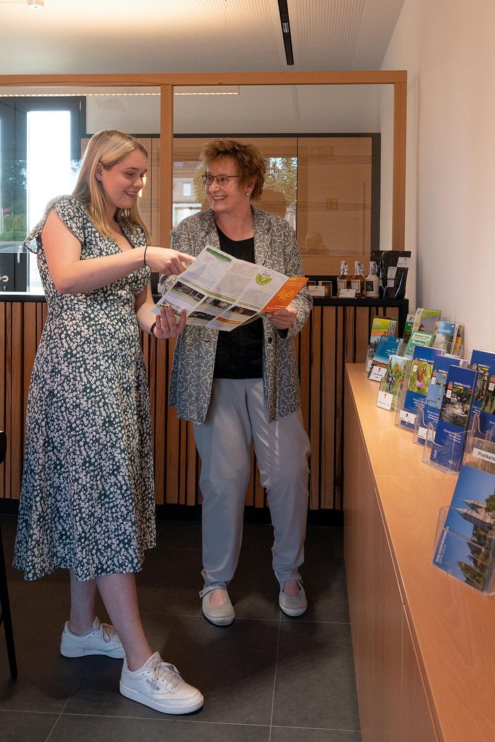Die Tourist-Information bietet umfassende Beratung zu Wander- und Radwegen, Sehenswürdigkeiten und Unterkünften. Besonders Radfahrer profitieren von einer Reparaturstation, die auch außerhalb der Öffnungszeiten zugänglich sind. Sitzgelegenheiten im Innen- und Außenbereich laden zum Verweilen ein