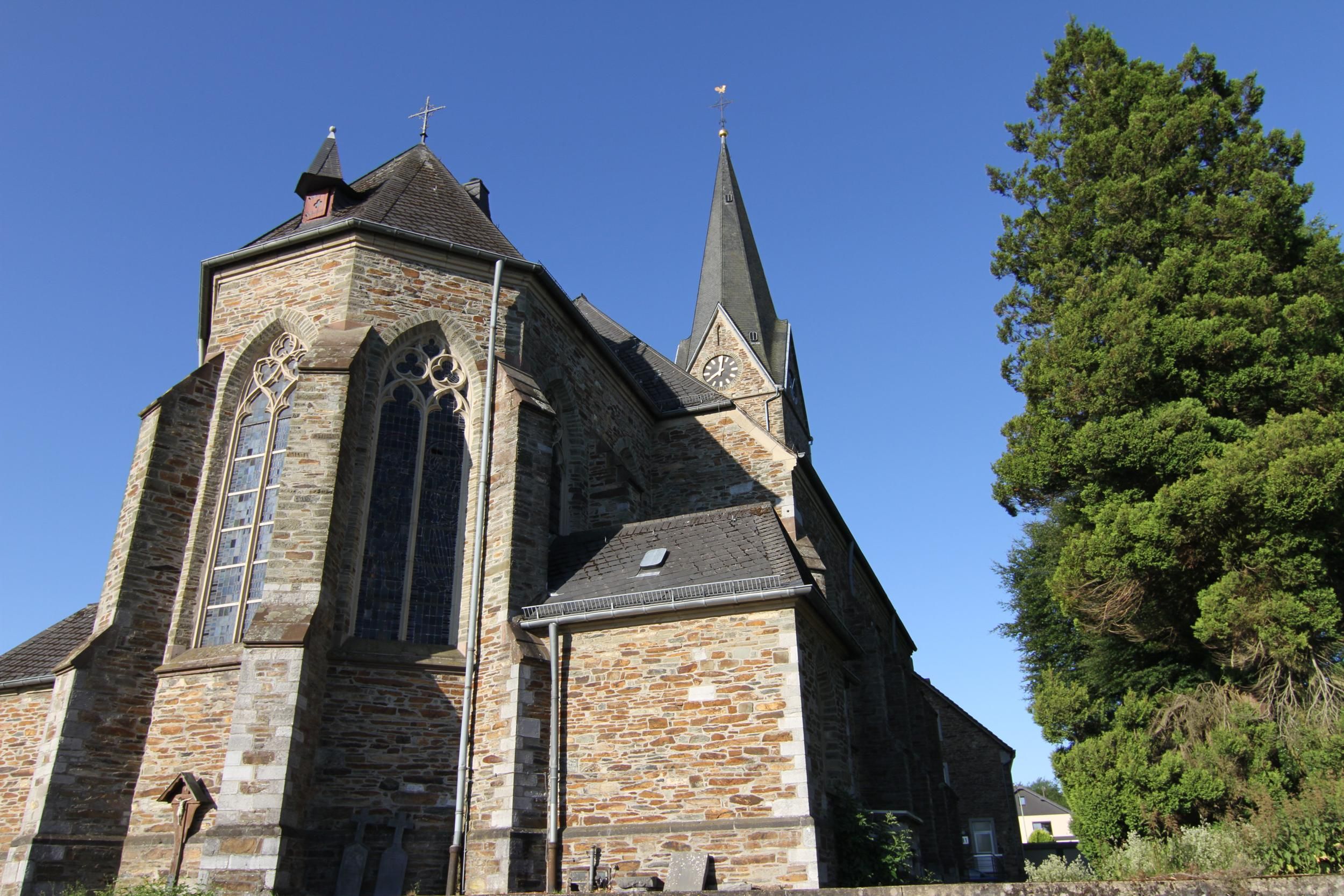 Die Tour startet an der Kirche St. Johann Baptist in Lammersdorf, die 1902 in neugotischem Stil errichtet wurde und noch heute fasziniert durch farbenfrohe Ausmalung, prächtige Holzaltäre und schwarze Marmorsäulen. Dabei handelt es sich um eine der wenigen Kirchen, die die Schlacht um Hürtgenwald 1944/45 nahezu unbeschadet überstanden haben.