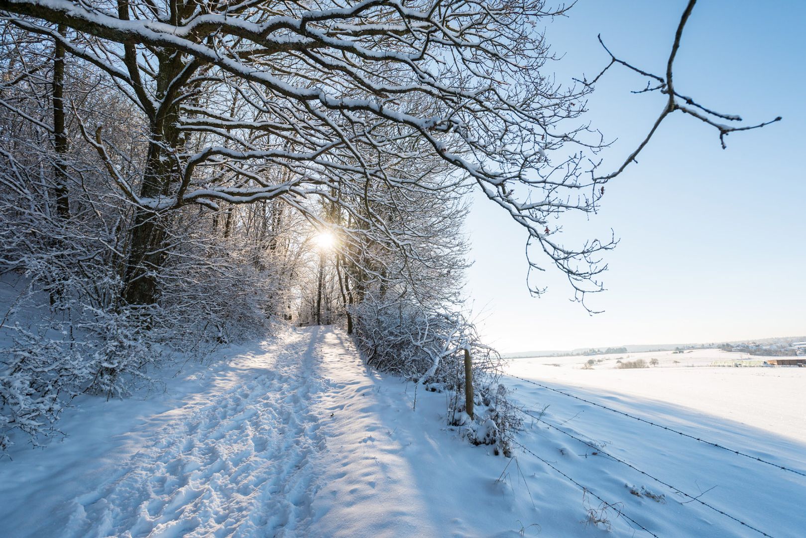 Bei Schneefall im Winter wird die Wandertour zum Schneewanderweg.