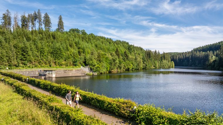 Dieser Rundweg führt dich durch Höfen, das Dorf der berühmten Buchenhecken. Zwischen den grünen Wänden öffnen sich immer wieder weite Blicke über das Monschauer Land. Der Weg verläuft entlang der verlassenen Perlenbacher Mühle und der Perlenbachtalsperre – Orte, an denen Geschichte und Natur ineinander übergehen.