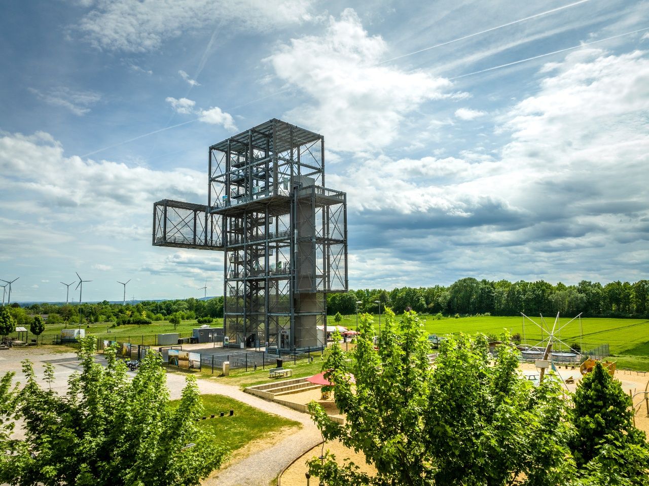 Als architektonisches Wahrzeichen des Indelandes ragt der Indemann auf der Goltsteinkuppe 36 Meter in die Höhe. Von seinen zahlreichen Aussichtsplattformen bietet sich ein weitreichender, spektakulärer Rundblick auf eine Landschaft, die sich in ständigem Wandel befindet. Zusammengesetzt aus 20.000 stählernen Einzelteilen wiegt das Stahlskelett des Indemannes stolze 280 Tonnen. Aus der Höhe der Stahlskulptur ist der Tagebau Inden in seinem ganzen Ausmaß zu erfassen. Bagger, Bandanlagen, aber auch die verschiedenen Erd- und Kohleschichten faszinieren den Betrachter. Am Fuß des Indemannes liegt ein großer Kinderspielplatz. Umgeben von zahlreichen Spielgeräten wartet auch ein Piratenschiff darauf, von kleinen Eroberern belagert zu werden.