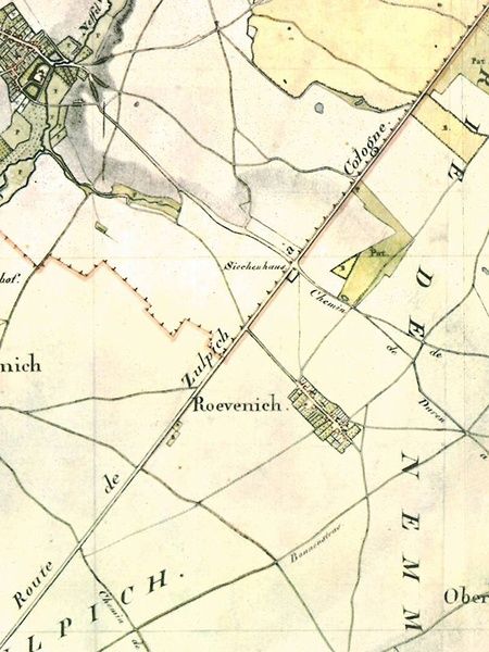 Weiter auf der Agrippastraße geht’s von Zülpich in den Stadtteil Hoven. Auf den letzten 400 m von Hoven nach Merzenich verlässt man die antike Trasse, die jedoch durch den schnurgeraden von Bäumen gesäumten Feldrain weiterhin erkennbar bleibt. Schlussendlich gelangt man zum Ende der zweiten Etappe, die Mansio Zülpich.