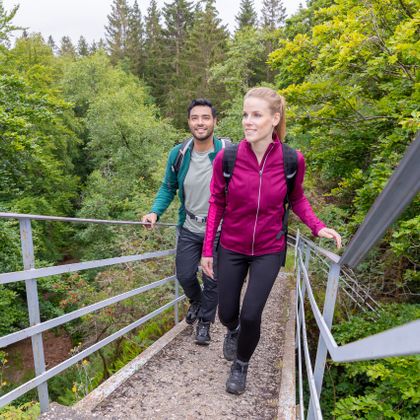 Die 9,5km lange Wanderroute mit Start- und Zielpunkt in Monschau-Kalterherberg führt Sie zunächst aus dem Ort heraus in Richtung Osten. Nach Überquerung der ehemaligen Vennbahnbrücke windet sich ein romantischer Pfad am Waldrand entlang nach Ruitshof. Dieser ist die kleinste bewohnte Exklave Deutschlands, da der Weiler nur über belgisches Staatsgebiet zu erreichen ist.