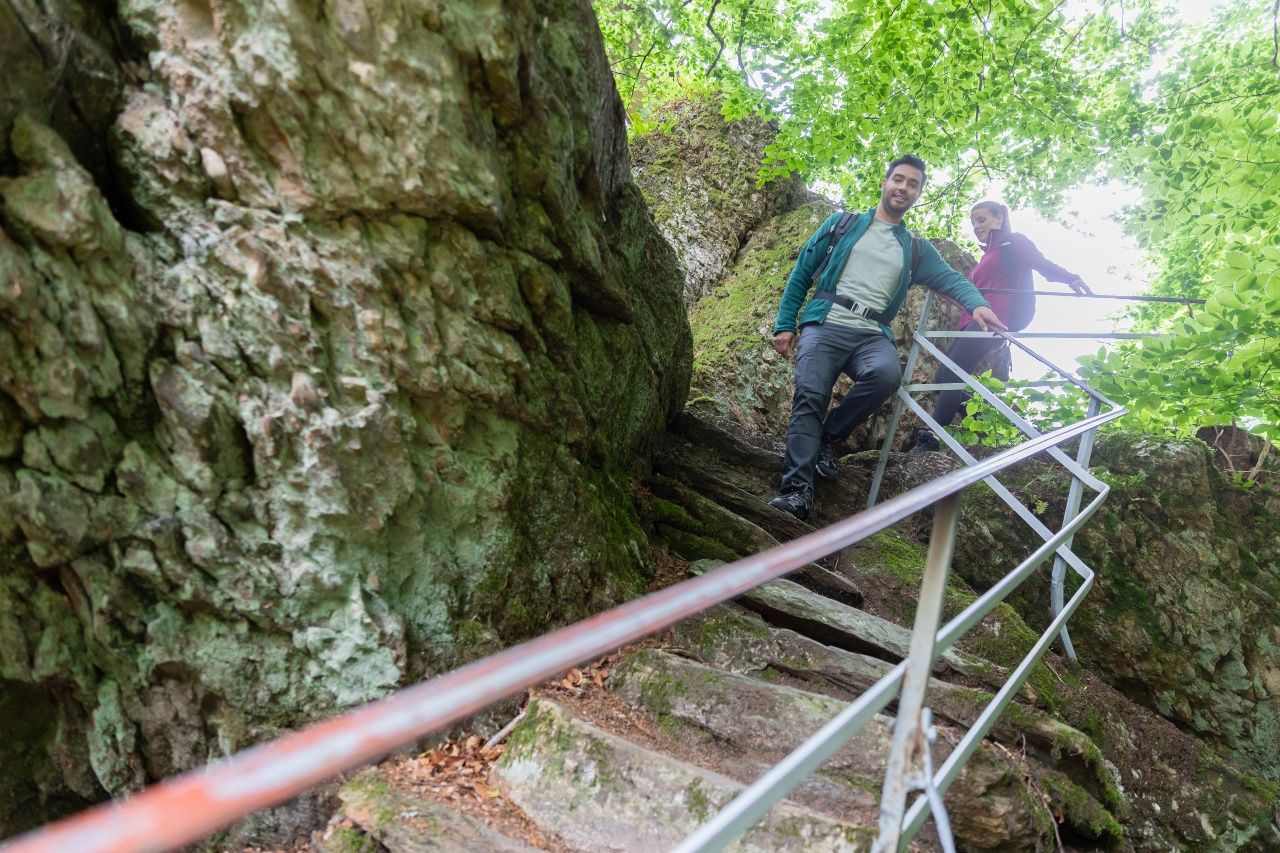 Über einen Gebirgspfad, der durch einen Fichtenwald mit zahllosen Blaubeersträuchern talwärts führt, und nach erneuter Überquerung der ehemaligen Vennbahntrasse gelangen Sie nach Reichenstein mit seinem idyllisch gelegenen Weiher. Das ehemalige Prämonstratenserkloster wurde um 1132 erbaut, 1802 im Zuge der Säkularisation aufgelöst und in einen Gutshof umgewandelt. Die neuen Eigentümer nutzten die Kirche fortan bis zur Renovierung 1972 zuerst als Tuchfabrik, später als Heustall. Seit September 2008 dienen die Gebäude wieder als Kloster.