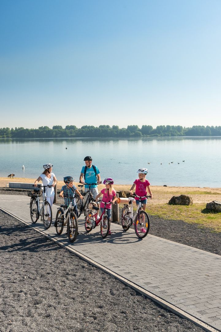 Die Route einzig und allein auf den neu entstandenen See und die ihn umgebene idyllische Landschaft zu reduzieren, wäre allerdings zu kurz gegriffen. Auch fernab des Wassers gibt es viel zu entdecken. So bietet der weithin sichtbare Indemann auf der Goltsteinkuppe dem Betrachter einen spektakulären Rundlbick auf das indeland. Das 36 Meter hohe Wahrzeichen weist mit seinem Arm auf die sich ständig verändernde Landschaft des Tagebaus Inden. Wer sich für das Thema Braunkohletagebau interessiert, für den empfiehlt sich ein Abstecher in das an der Route gelegene RWE-Infocenter im Braunkohlekraftwerk Weisweiler. Hier wird der Prozessablauf vom Braunkohleabbau über die Stromerzeugung bis zur Entwicklung eines zukunftsfähigen rekultivierten Tagebaus aufgezeigt. Zahlreiche an der Strecke gelegene (Wasser-)burgen wie z.B. Haus Kambach, Burg Kinzweiler und Haus Palant erinnern dagegen an vergangene Zeiten in denen noch Herzöge und Ritter durch das Land zogen.