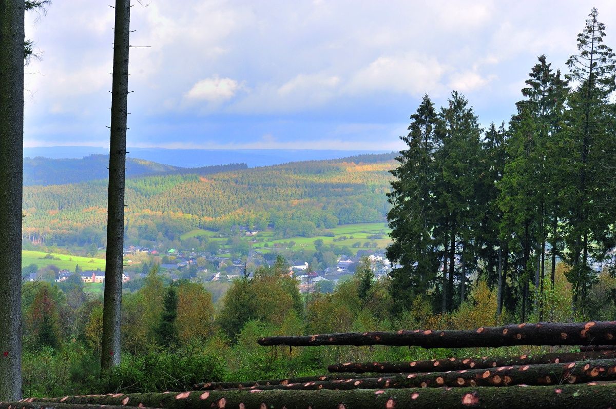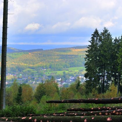 Erreicht man den Waldesrand, stechen die Blausteinhäuser von Recht ins Auge. Sie erinnern an die Steinindustrie, die vom 18. bis zu Beginn des 20. Jahrhunderts angedauert hat. Mehreren Steinmetzen, die zwischen 1725 und 1735 einwanderten, ist der bedeutende Aufschwung der Schieferförderung zu verdanken. Auch zahlreiche Bürger ließen sich als Steinmetze ausbilden und überlieferten ihren Söhnen ihr Handwerk. So konnte die Tradition der Facharbeiter im Steinbruch fortleben. 1907 nahm der Abbau dieses Natursteins ein Ende. Ein Jahrhundert später konnte die Trasse des ehemaligen Schieferstollens und seines Blausteins dank einer kolossalen Instandsetzungsarbeit zu neuem Leben erweckt werden. Es wäre schade, wenn man die Wanderung nicht für einen Besuch nutzen würde. Man setzt diese schöne Strecke fort und erreicht die Anhöhen von Recht, wo atemberaubende Panoramen warten. Ebenso angenehm ist die Rückkehr durch den Wald – nirgendwo ist ein Haus zu sehen.
