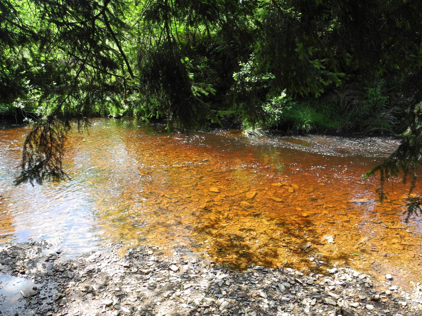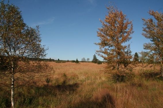 Der Weg steigt wieder an und die Umgebung wird immer wilder. Je mehr man in diese Gegend eindringt, umso mehr verkümmert der Nadelwald, bis nur noch vereinzelt Bäume auftauchen. Später verschwindet der Wald ganz und das weite Heideland des östlichen Hohen Venns erscheint. Diese Seite des Hohen Venns ist weniger bekannt, aber vielleicht umso rauer. Die Strecke nähert sich dem Venn und schlägt einen Pfad entlang des Baches ein. Auf 500 m Höhe spürt man die Kälte der Hochebene deutlich. Auch auf dem Rückweg ist Wasser Ihr ständiger Gefährte, führt er doch entlang des Ufers des ebenso quirligen Steinbachs.