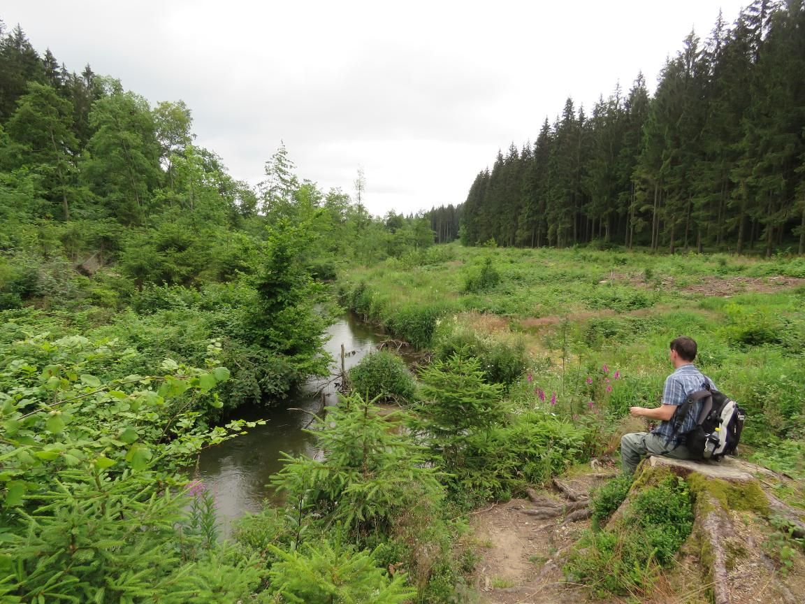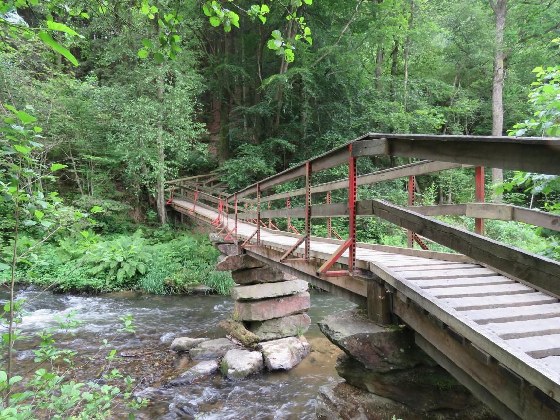 Die Route verlagert sich nach oben, die Umgebung ist wild. Zahlreiche Moore umgeben das Becken der Amel, aber ein Holzpfad sorgt dafür, dass Sie trockene Füße behalten! Der Wanderweg steigt das andere, offenere Ufer hinauf: Der Nadelwald weicht weiten Feldern. Bevor Sie Ondenval erreichen, können Sie einen schönen Ausblick auf den Wolfsbusch und die umliegenden Hügel genießen.