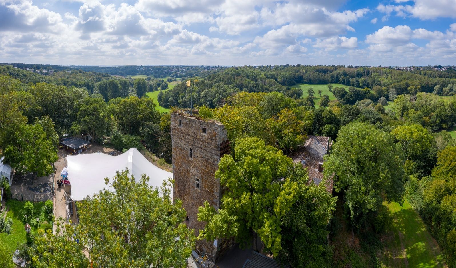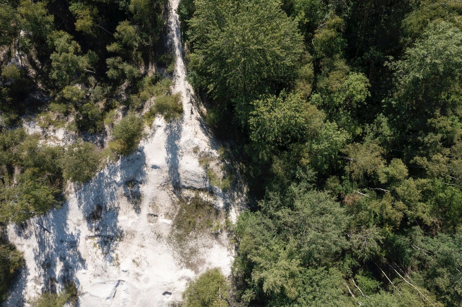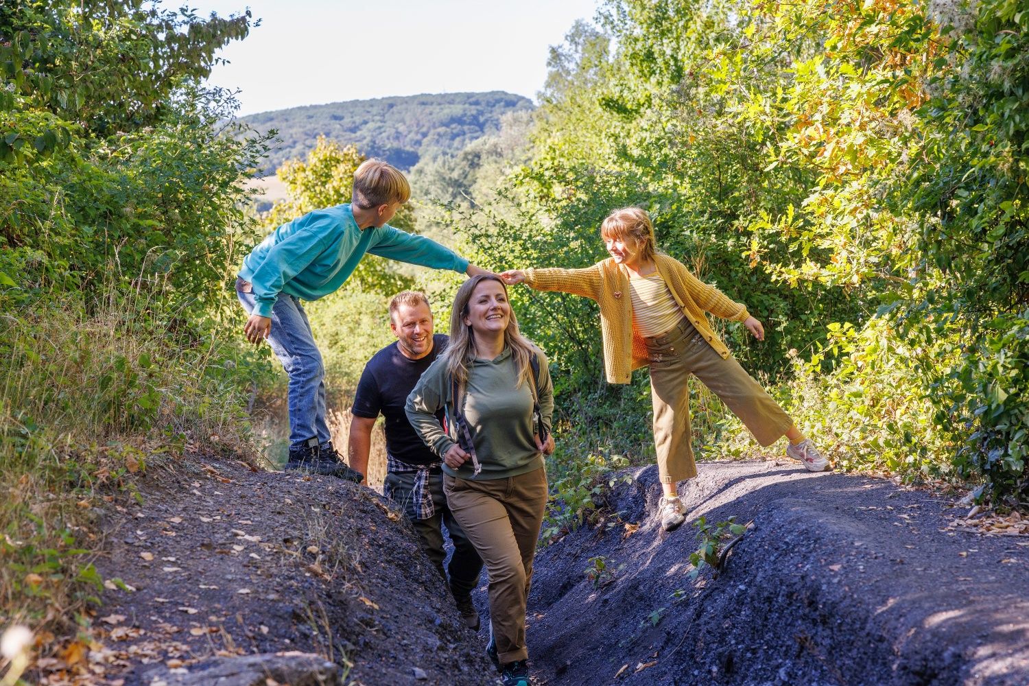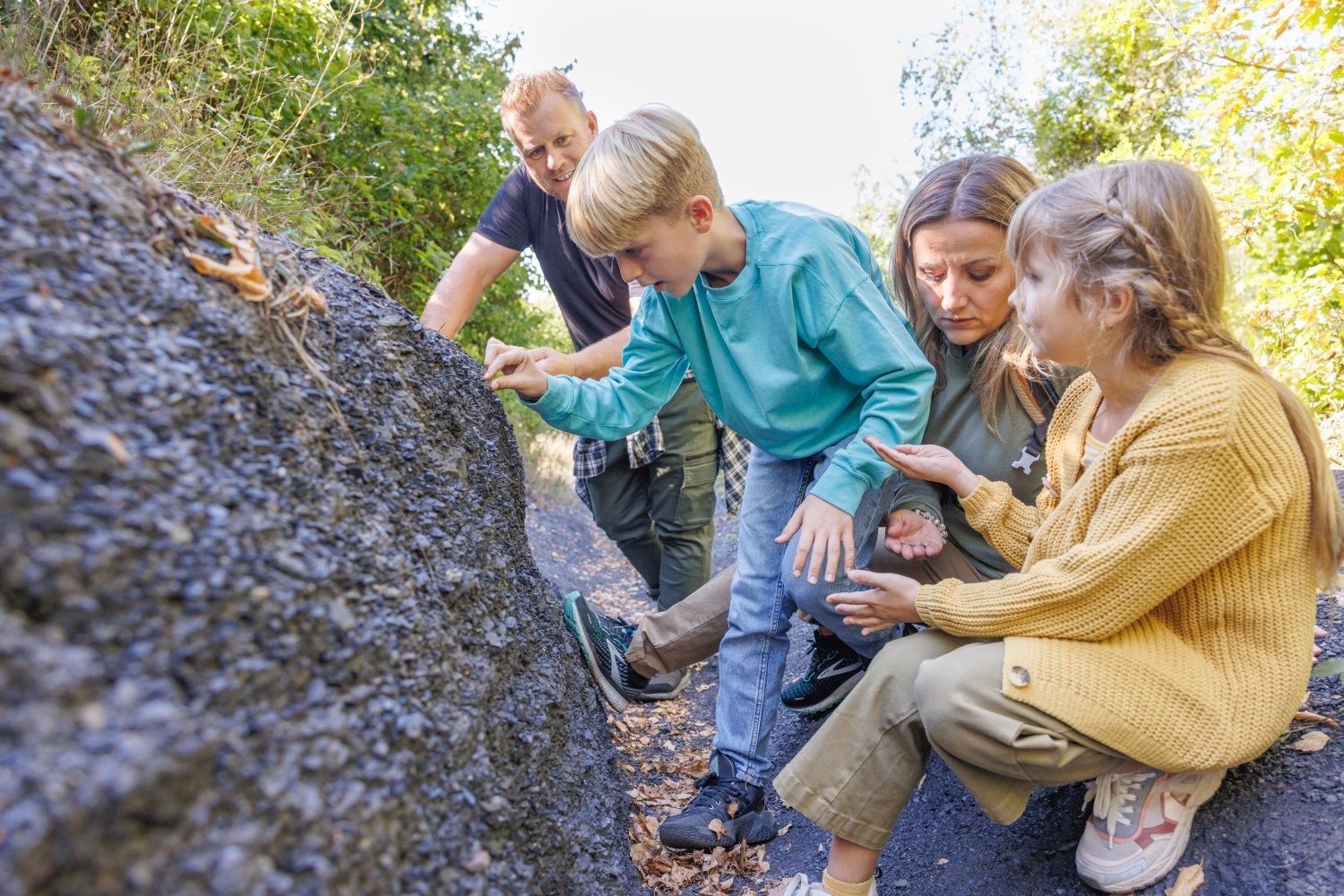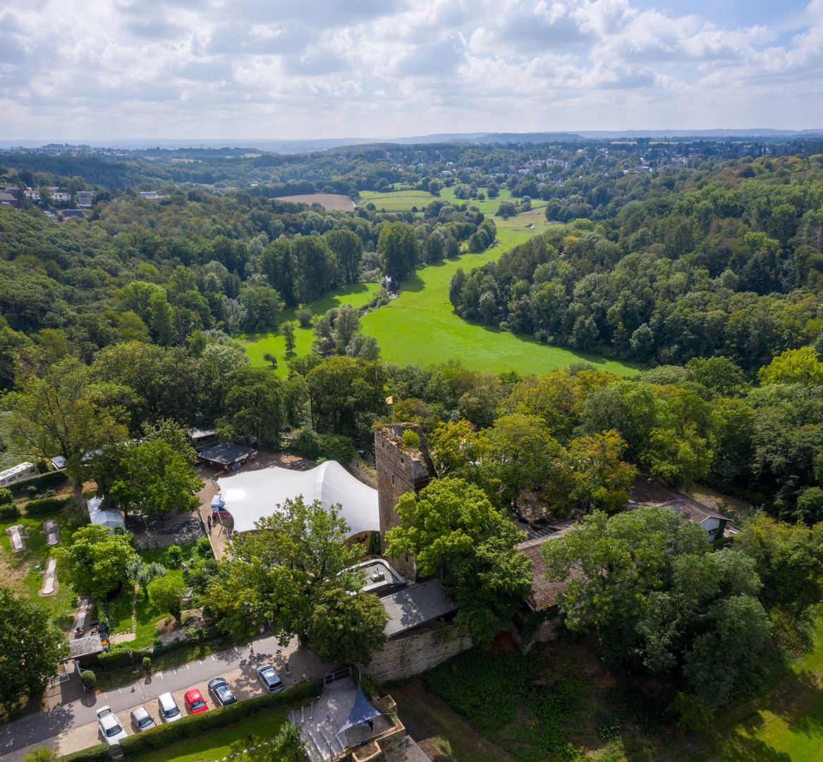 Gleich zu Beginn liegen riesenhafte weiße Steineier im Weg, kein Dinosauriergelege, sondern die Kunstinstallation „Black & White“. Sie erinnern an die bis 1929 aktive Sodafabrikation in Würselen. Auch deren Vermächtnis, eine bis zu 10 Meter mächtige Kalkhalde aus Rückständen der Fabrik, wirkt fast wie ein Alien im Wurmtal. Schwarzes finden wir hüben wie drüben an den Hängen des Flusses. Reine Natur, da die Kohle hier bis an die Erdoberfläche reicht. Vom menschlichen Wirken erzählen die bis heute sichtbaren laubbedeckten Schürfmulden, die wir im Wald entdecken können. Menschengemacht, da die Hänge den Kohleabraum aufnehmen mussten. Die Hochebene der schwarzen angeschütteten Halde Gouley erstreckt sich zu Füßen einer Aussichtsplattform, während die der Halde Langenberg auf der Kohlscheider Wurmseite versteckt im Grün von Wald und Volksgarten schlummert. Die Wurm ganz unten kümmert es wenig, geschützt darf sie durch ihre selbst geschaffene Auenlandschaft mäandrieren.