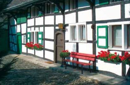 Wir beginnen unsere Tour direkt am Heilsteinhaus mit der Heilsteinquelle, die dort in den 2003 errichteten Brunnen fließt und bereit zur Römerzeit genutzt wurde. Danach laufen wir die Franz-Becker-Straße hinauf und treffen nach wenigen Metern auf ein von einer mächtigen Buchenhecke umgebenes Holzkreuz. Danach gelangen wir zum Friedhof mit dem mächtigen Kreuz aus Maria Laacher Basalt. Gleich hinter dem Friedhof gelangen wir in offenes Wiesengelände. Der Waldrand rechts von uns begrenzt aber nicht nur die bewirtschaftete Fläche. Der Nationalpark Eifel beginnt oberhalb der Baumgrenze. Bevor wir vorbei an alten Obstbäumenzum Waldrand gelangen, bietet sich uns links vom Weg eine willkommene Erholungsmöglichkeit. Im Tretbecken vor dem Hochbehälter der ehemaligen Einruhrer Wasserversorgungsgenossenschaft gönnen wir uns eine wohltuende Erfrischung. Der sich ständig verändernde Blick auf den Ort, den See, die bewaldeten Hänge und die Höhenorte am Rande des Rurtales sind ein Genuss. Außerdem lässt sich von hier oben gut nachvollziehen, wie Einruhr sich in den letzten 50 Jahren entwickelt hat. Wieder zurück in der Zivilisation geht es jetzt rasch bergab. Unten angekommen, begegnen wir der jüngeren Geschichte des Ortes, und zwar den einschneidenden Ereignissen der Jahre 1952 bis 1958. Ein großer Teil des Geländes zum Seeufer hin wurde damals im Zuge der Aufstockung des Obersees angeschüttet. Mehrere Häuser, die im künftigen Staubereich lagen, mussten ebenso wie der größte Teil von Pleushütte jenseits der Rurbrücke abgerissen werden. Mit den Häusern Nr. 46 und 39 hat es eine ganz besondere Bewandtnis. Bei dem einen handelt es sich um das Gebäude der ehemaligen Badeanstalt von Rurberg, das andere stand früher in Pleushütte. Bevor das Wasser kam, wurden beide sorgfältig abgetragen und hier an hochwassersicherer Stelle wieder aufgebaut. Glücklicherweise haben mehrere schöne Fachwerkhäuser die gewaltigen Baumaßnahmen überlebt. Am Naturfreibad vorbei gelangen wir zum Ehrenmal, das an die Gefallenen beider Weltkriege erinnert. Hier stand einst die erste, 1749 erbaute, Kirche des Ortes. Kurz darauf entdecken wir zwischen den Fachwerkhäusern in einer Mauer unter Apfelbäumen zwei Mühlsteine, die an die über 300 Jahre alte Mühle, die ebenfalls der Anschüttung weichen musste. An der Kreuzung vor der Kirche biegen wir nach rechts in die Straße “Am Obersee“ ein und gelangen zur Uferpromenade und genießen die Schönheit der Landschaft. Von der Parkanlage mit Spiel- und Klettermöglichkeiten für Kinder gelangen wir in die„Rurstraße“. Kurz vor der Kirche entdecken wir in der Mauer einen Stein mit lateinischer Inschrift. Der Text lautet übersetzt: „Dem lebendigen Gott, von dem alle Gaben kommen.“ Die Votivtafel erinnert an die Einweihung der Heilsteinquelle im Jahr 1826 und ist das letzte Überbleibsel der damaligen Brunneneinfassung.