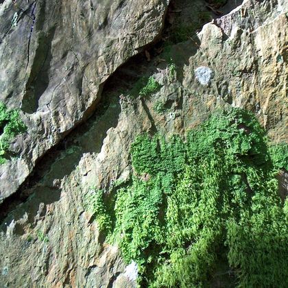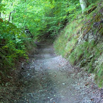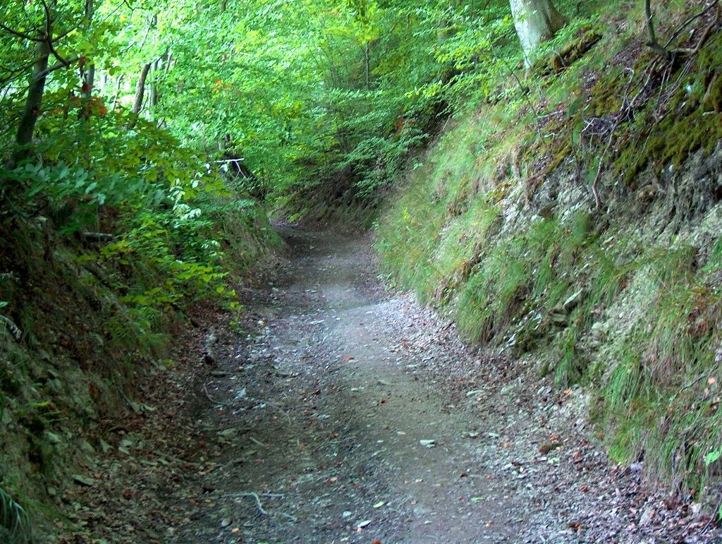 Im Wald angekommen können wir die herrliche Aussicht auf den Ort und die steilen Hänge des Tales ungehindert genießen. Oberhalb von Erkensruhr beginnt nun eines der schönsten Stücke unserer Wanderung. Im Eichenwald befinden wir uns bereits auf dem Gebiet des Nationalparks Eifel. Uns wird rasch klar, warum diese Landschafteinen so hohen Stellenwert hat. Wir erleben mit Flechten und Moosen überzogene Felsen, ein tief eingeschnittenes Seitental mit einem munter dahinplätschernden Bach sowie Bäume, die der Wind und das Alter gefällt haben, und die ihrerseits zum Lebensraum für Pflanzen und Tiere geworden sind.