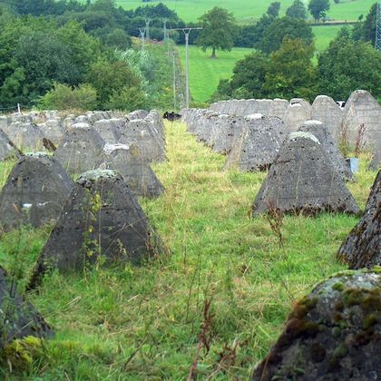 Sichtbares Mahnmal dafür, dass der Krieg auch in der Eifel war, ist die Höckerlinie, ein in Beton gegossener Panzerabwehrwall. An der Kreuzung verlassen wir nach links den befestigten Weg. Der Friede, der uns hier umgibt, birgt ein dunkles Geheimnis: den »Cholerafriedhof«. Aus Russland kam die Seuche 1831 nach Deutschland und bisn ach Aachen. Der Friedhof außerhalb des Dorfes wurde als Vorsichtsmaßnahme angelegt – und dabei blieb es auch. Die Cholera hat Aachens Stadtgrenze nicht überschritten.