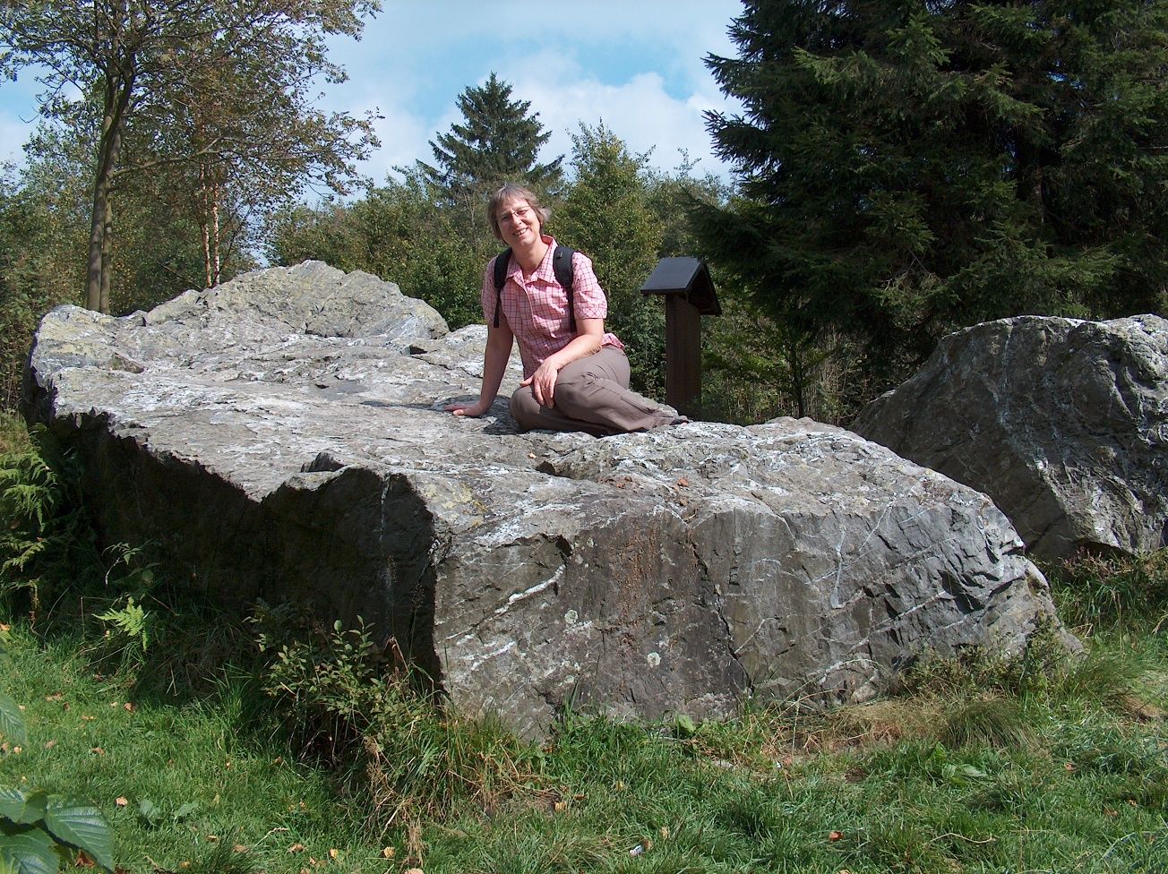 Unser nächstes Ziel ist „Kaiser Karls Bettstatt“, einer der mächtigsten Quarzitblöcke des Hohen Venns. Das Gestein, aus dem er besteht, wurde vor etwa 500 Millionen Jahren gebildet und gehört der geologisch ältesten Periode des Erdaltertums, dem Kambrium, an. In alter Zeit diente der Block als Grenzmarke des Klosters Reichenstein bei Kalterherberg. Heute kennzeichnet nur wenige Schritte entfernt ein moderner Stein den Verlauf der deutsch-belgischen Grenze. Wie eine alte Sage berichtet, geriet der Kaiser mit seinem Gefolge bei der Jagd nach einem prächtigen Hirsch immer tiefer in den Reichswald hinein. Als es bereits zu dämmern begann, musste die Jagdgesellschaft feststellen, dass sie sich verirrt hatte. Zu weitläufig war die Landschaft mit Dickicht und Sumpfgebieten. An eine Rückkehr zum Konzener Hof war nicht zu denken. Da entdeckte einer von des Kaisers Leuten einen mächtigen Felsblock, der als Bett für den Herrscher geeignet schien. So beschloss man, hier das Nachtlager aufzuschlagen. Ob Karl der Große einen bequemen Aufenthalt hatte, ist nicht überliefert. Wie der Volksmund berichtet, soll ihm einer der Diener wegen der Kälte der Nacht seine Mütze angeboten haben. Doch der Kaiser wies das Angebot mit der knappen Bemerkung „Mütze nicht!“ zurück. Was lag da näher, das fürstliche Wort zum Namen des Orts zu machen?