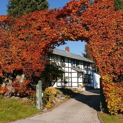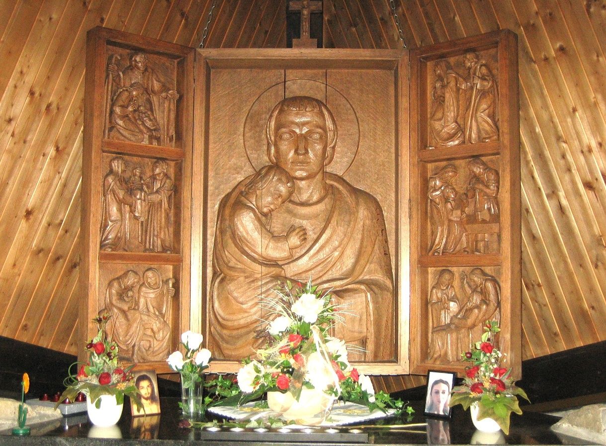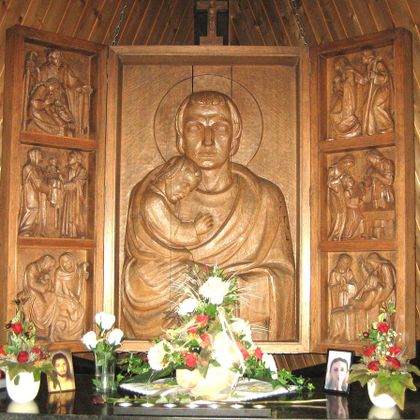 Nachdem wir den Aussichtsturm bestiegen und unseren Wissensdurst mit Hilfe der zahlreichen Informationstafeln gestillt haben, gelangen wir an den Rand des Weidelandes. Wir biegen links ab und betreten einen romantischen Pfad, der am Naturschutzgebiet entlangführt. Bei Nässe oder mit einem Kinderwagen empfiehlt es sich, bis zur Straße zu gehen und dem Fußweg in Richtung Ortsmitte zu folgen. Vorbei an neuen und alten Häusern, die zum Teil von mächtigen Schutzhecken umgeben sind, erreichen wir über den Parkplatz die Pfarrer-Scheidt-Straße, den Vennweg und die Reichensteiner Straße die Josefskapelle. Bereits 1815 errichtete Theoderich Heinen, der am Russlandfeldzug Napoleons teilgenommen hatte, als Dank für seine glückliche Heimkehr an dieser Stelle ein achteckiges „Heiligenhäuschen“ mit einer kleinen Muttergottes-Figur. 1942 wurde es dem heiligen Josef geweiht. Wegen des schlechten Zustandes entschloss man sich 1967 zum Neubau. Das besondere an der Kapelle ist der Flügelaltar aus Eichenholz mit Szenen aus dem Leben der heiligen Familie. Neben einer ausführlichen Beschreibung der Kapelle und ihrer Geschichte gibt ein Heftchen mit meditativen Texten Auskunft über das Bildprogramm. Steinplatten mit Danksagungen an den Seitenwänden zeigen, dass nach wie vor Menschen hierher pilgern, um den Ziehvater Jesu um Hilfe anzuflehen.