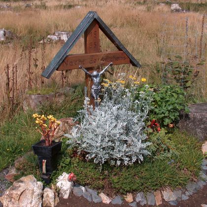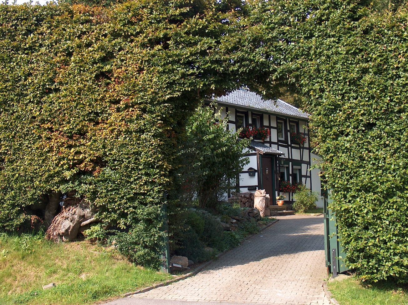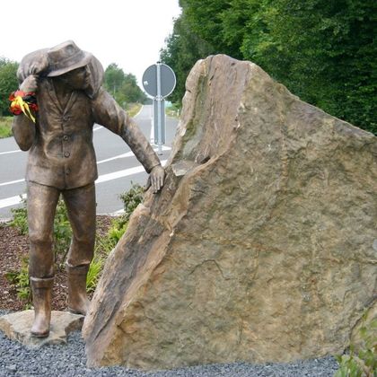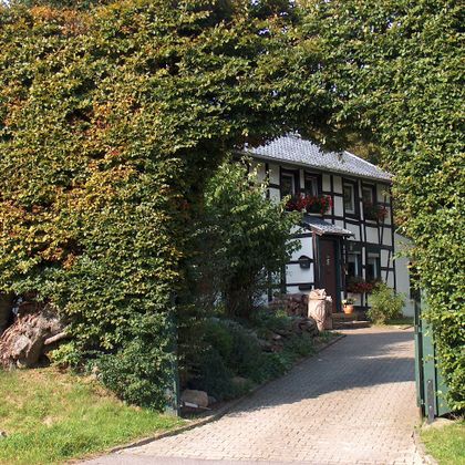 Der schmale Kapellenweg hat eine besondere Atmosphäre. Er führt uns abseits der Fahrstraßen an alten Hecken und mächtigen Buchen vorbei in Richtung Ortsmitte. Die „Liechejass“, an der wir vorbeigehen, erinnert an die Zeit, als die Mützenicher und Kalterherberger ihre Toten noch nach Konzen zum Friedhof bringen mussten. Erst 1856 erhob der Kölner Erzbischof, zu dessen Diözese das Monschauer Land damals gehörte, die Kirchengemeinde zur Pfarre. Die Grundsteinlegung zum Bau der ersten Kirche erfolgte 1847, 1850 fand die Weihe statt. 1954 wurde der inzwischen zu klein gewordenen Bau erweitert. Wer das Gotteshaus von der Straßenseite her betritt, ist verblüfft. Anders, als es zunächst den Anschein hatte, steht man in einem modernen Innenraum. Doch es gibt hier nicht nur Kunstwerke aus den 1950er Jahren zu bestaunen wie die Kupfertreibarbeiten an der Kanzel oder der Kreuzweg mit seinen lebensgroßen Figuren, die in der seltenen „Sgraffito-Technik“ gearbeitet sind. Ein besonderes Kleinod ist die um 1350 entstandene Statue des heiligen Bartholomäus, dem das Mützenicher Gotteshaus geweiht ist. Der Märtyrer, dem seine Peiniger bei lebendigem Leibe die Haut abzogen, bevor sie ihn enthaupteten, kommt nicht nur in zahlreichen Bauernregeln vor. Wohl wegen der Art seines Martyriums gilt er unter anderem als Schutzpatron der Steuerzahler.