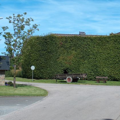 Auf der Wanderkarte am Parkplatz stellen wir fest, dass Rohren und seine Umgebung einiges zu bieten haben. Hier beginnt auch der Naturlehrweg, der unter anderem zum Holzkohlenmeiler und zur historischen Sägemühle im Kluckbachtal führt. Doch das sparen wir uns für eine andere Wanderung auf. Unser heutiges Ziel ist der Ort selbst. Auf dem Weg zur Kirche erreichen wir zunächst das ehemalige Pfarrhaus. Die beiden mächtigen Lindenbäumen im Vorgarten, die Fassade aus Bruchstein und Fachwerk sowie die kunstvoll gearbeitete Haustür sind Romantik pur. Hier scheint die Zeit stehen geblieben zu sein. An der Pfarrkirche ist sie nicht spurlos vorübergegangen. Im Jahr 1700 errichteten die Rohrener ihr erstes Gotteshaus, das 1865 einem geräumigeren Neubau weichen musste. Bei der Sprengung im September 1944 durch die SS fiel der Turm auf das Kirchenschiff. Der Bevölkerung aus Rohren und Widdau gelang es, einen großen Teil der Außenmauern zu erhalten und ihr Gotteshaus wieder aufzubauen. Im Kirchenschiff hat noch ein Zeugnis aus alter Zeit überdauert. Es ist ein Gedenkstein aus dem Jahr 1724, der sich über dem Eingang befindet. Gegenüber der Kirche bemerken wir ein eigenartiges Gestell mit einer Tafel, die über die Geschichte des Ortes informiert. Es ist der Nachbau eines Ziehbrunnens, wie er auf alten Fotografien zu sehen ist. Noch bis zum Bau der Wasserleitung im Jahr 1957 schöpften die Einwohner mit der „Pötzroot“, einer Holzstange mit Haken und Eimer, Wasser aus den Brunnen vor den Häusern. Ein Brunnen befindet sich übrigens in dem Bruchsteingemäuer in der Hecke. Wir setzen unseren Weg durch die Parkanlage mit Schutzhütte und alten Obstbäumen fort. Mit dem Gebäude im Winkel von Dröft und Markstockstraße, in dem sich heute ein Lebensmittelgeschäft befindet, hat es seine besondere Bewandtnis. Es war das erste, 1830 erbaute Schulhaus samt Lehrerwohnung. Schon bald reichte der Platz nicht mehr aus. 1865 wurde gegenüber die neue Schule erbaut. Seit 1968 besuchen die Rohrener Kinder die Grundschule in Höfen. Das Schulgebäude dient heute als Belegferienhaus für Jugendgruppen. Hinter dem Rohrener „Versorgungszentrum“ befindet sich ein 1903 errichtetes Kapellchen. Es ist dem hl. Josef geweiht, dessen Sterbeszene im Innern dargestellt wird. „Jesus, Maria, Joseph, steht uns bei in der Stunde des Todes“ ist auf einer Tafel zu lesen. Noch heute wird hier für Sterbende gebetet. Vorbei an schmucken Häusern und gepflegten Vorgärten setzen wir unseren Weg durch Lommersgasse und Riehelskuhl fort. Bis zur Hauptstraße geht es nun leicht bergauf. Dass wir auf unserem Rundgang auf keine alten Häuser treffen, ist das Ergebnis der heftigen Kämpfe von Herbst 1944 bis Anfang 1945. Wenige Monate genügten, um Alt-Rohren in Trümmer zu legen. Lediglich zwei Häuser blieben unversehrt. Einem der Beschädigten wurde eine besondere Ehre zuteil. Es wurde sorgfältig demontiert und im Rheinischen Freilichtmuseum Kommern in seinem ursprünglichen Zustand wieder aufgebaut. Ein wenig verwundert sind wir beim Blick auf das Straßenschild „Burggasse“. Doch der Weg führt nicht, wie man vermuten könnte, zu einem trutzigen mittelalterlichen Wehrbau. Gemeint ist ein Gehöft, dessen Ursprung auf die Zeit um 1600 zurückgeht. Nach zwei Feuersbrünsten geschah um 1700 etwas für das Dorf völlig ungewöhnliches. Der betuchte Hausherr ließ sich von Maurern aus dem Aachener Raum einen zweigeschossigen Neubau weitgehend in Massivbauweise aus Venwegener Bruchstein errichten. Da es in Rohren ansonsten nur Fachwerkhäuser gab, war bald nur noch von der „Burg“ die Rede. An der Retzstraße treffen wir auf ein imposantes Naturdenkmal, eine über 400 Jahre alte Bergulme. Dieser Laubbaum ist im Monschauer Land nur noch selten zu finden. Das Ehrenmal unter der weiten Baumkrone erinnert an die Gefallenen der beiden Weltkriege. Unser nächstes Ziel ist das Sommer- und Wintersportzentrum in der Rödchenstraße, zu dem auch eine Blockhütte gehört. Den Weg dorthin kann man Dank der Hinweisschilder nicht verfehlen. Die große Attraktion des Freizeitgeländes ist die 751 Meter lange Abfahrt auf der Sommerbobbahn. Zahlreiche Spielgeräte sorgen dafür, dass es den kleinen Besuchern nicht langweilig wird. Im Winter ist der Hang.fest in der Hand der Skifahrer, die hier all das vorfinden, was das Herz eines Wintersportlers begehrt. Doch es gibt noch einen weiteren Grund, eine Pause einzulegen. Von hier aus bietet sich ein herrlicher Blick auf den Höhenzug am Rand der Hohen Venns. Er erstreckt sich von Kalterherberg bis nach Mützenich. Auf unserem Weg durch die Rödchenstraße bleiben wir immer wieder kurz stehen, um die Fernsicht zu genießen. An der Einmündung in die Straße „Am Kirchrott“ steht rechts vom Weg die 1999 auf Anregung des Rohrener Heimatvereins wieder aufgebaute Marienkapelle. Ihr gegenüber erhebt sich eine ungewöhnlich mächtige Schutzhecke. Hier soll das erste Haus von Rohren gestanden haben. Nun wollen wir noch eine besondere Sehenswürdigkeit aufsuchen. Wir gehen zunächst in Richtung Ortsmitte und biegen dann nach rechts in die Borngasse ein. Am Ende des Wohngebietes erwartet uns eine romantische Weidelandschaft. In der Nähe des Waldrandes gelangen wir an einen Platz mit mehreren Ruhebänken und einen eingefriedeten Park. Schon von weitem hören wir das Plätschern eines Springbrunnens. Dort angelangt stehen wir vor der großen, 1903 auf Initiative des Rohrener Pfarrers Hesseler angelegten Lourdes-Grotte. Sie ist Ausdruck der tiefen Frömmigkeit und des Gottvertrauens der Menschen. Nach der Herrichtung des Bauplatzes schafften Fuhrleute aus Rohren und Widdau mit ihren Gespannen 150 Wagenladungen Bruchsteine und Sand herbei. Mit Hilfe von Zement und Schlackensteinen aus dem Hüttenwerk von Aachen-Rothe Erde entstand innerhalb kürzester Zeit eine künstliche Höhle mit Nischen, Säulen und Tropfsteinen. Noch heute ist die Grotte Ziel von Pilgern, die die Gottesmutter um Hilfe 