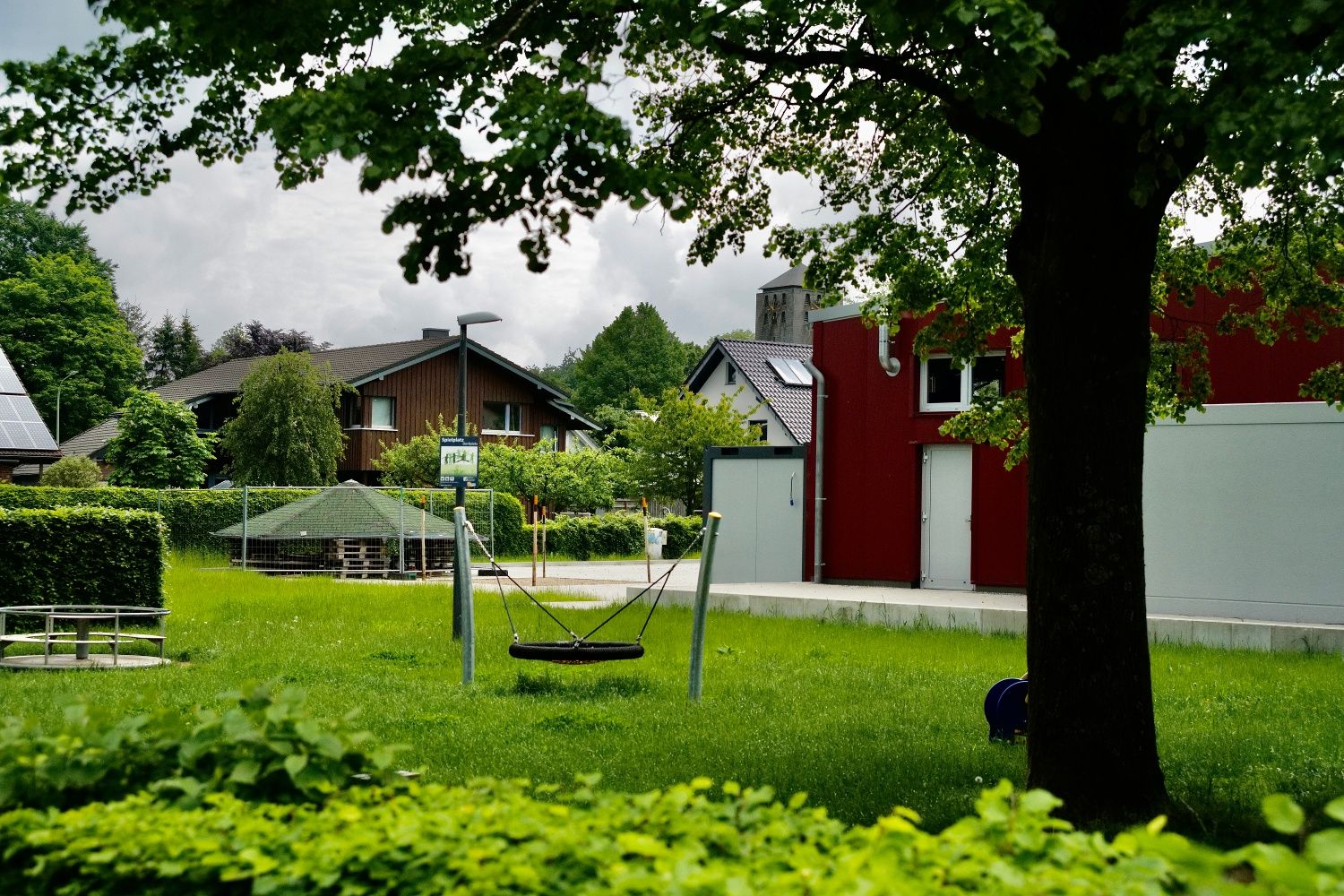 Ein weiteres Beispiel für den hohen Freizeitwert von Rollesbroich und seiner Umgebung finden wir in der Rolandstraße. Hier betreibt das städtische Gymnasium Herzogenrath sein Landschulheim. Gleich hinter dem Sportplatz haben wir eine herrliche Aussicht auf die ausgedehnten Waldflächen zwischen dem Kalltal und der Höhe von Langschoß bei Lammersdorf. Wir gehen nun wieder einige Schritte zurück und biegen dann in den Konertzweg ein. Dort erreichen wir schon bald den gepflegten Dorfplatz. So ruhig und beschaulich wie auf unserer Wanderung ist es nicht immer. Vor allem am 1. Mai und zu Kirmes geht es hoch her. Der Ort ist schließlich nicht umsonst für sein ausgeprägtes Dorf- und Vereinsleben weithin bekannt. Bevor es weitergeht, werfen wir noch einen Blick auf die Tafel vor dem Spielplatz, die uns über das „Wandererlebnis Eifel“ in und um den Nationalpark informiert.