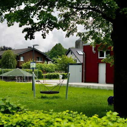Wir beginnen unseren Rundweg auf dem Parkplatz vor dem Friedhof, werfen aber vorher noch einen Blick auf die schöne Wildblumenwiese schräg gegenüber vom Kindergarten auf dem Friedhofsweg. Wir biegen in die Otto-Voss-Straße ein, die die Erinnerungan jenen Pfarrer aufrecht erhält, der nach dem Ende des 2. Weltkrieges in Rollesbroich tätig war und dessen Wirken bis heute das Leben im Ort prägt.