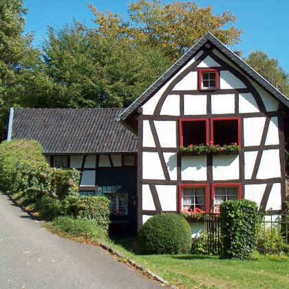 Schon nach kurzer Zeit wird uns klar, warum Rurberg etwas Außergewöhnliches ist. Überall treffen wir auf alte Fachwerkhäuser - die für die Nordeifel typischen Winkelhöfe. Einige von ihnen stammen noch aus dem 17. Jahrhundert. Wir bemerken eine alte Brunnenkammer. Es ist eine in Bruchstein gefasste Quelle, aus der immer noch munter das Wasser plätschert. In früheren Zeiten holten die Nachbarn von hier das Trinkwasser. Später wurde sie auch als Viehtränke benutzt.