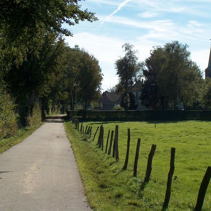 Kurz danach befinden wir uns in dem zweiten „Ur-Dorf“, dem ehemaligen Oberrollesbroich. Der etwas abseits der Straße gelegene Keischgenshof am Ortseingang steht auf den Grundmauern des ältesten, bereits 1361 urkundlich erwähnten Gebäudes von Strauch. Auf unserem Weg können wir recht gut nachvollziehen, wie Strauch seit dem 19. Jahrhundert zusammengewachsen ist. Immer wieder passieren wir Fachwerkhäuser und haushohe Schutzhecken, die früher wie heute die rauen Westwinde abhalten.