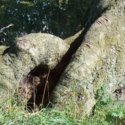 Der „Leichenweg“, auf dem wir unsere Wanderung fortsetzen, ist uralt. Auf ihm zogen die Menschen aus Woffelsbach und Steckenborn in frühester Zeit sonn- und feiertags nach Konzen zur Mutterkirche des Monschauer Landes. Ab 1346 wurde es für sie ein wenig einfacher. Bis zum Bau eigener Gotteshäuser mussten sie „nur noch“ bis Simmerath gehen. „Am Kreuzchen“ erreichen wir den mit 539 Metern höchstgelegenen Punkt von Strauch.