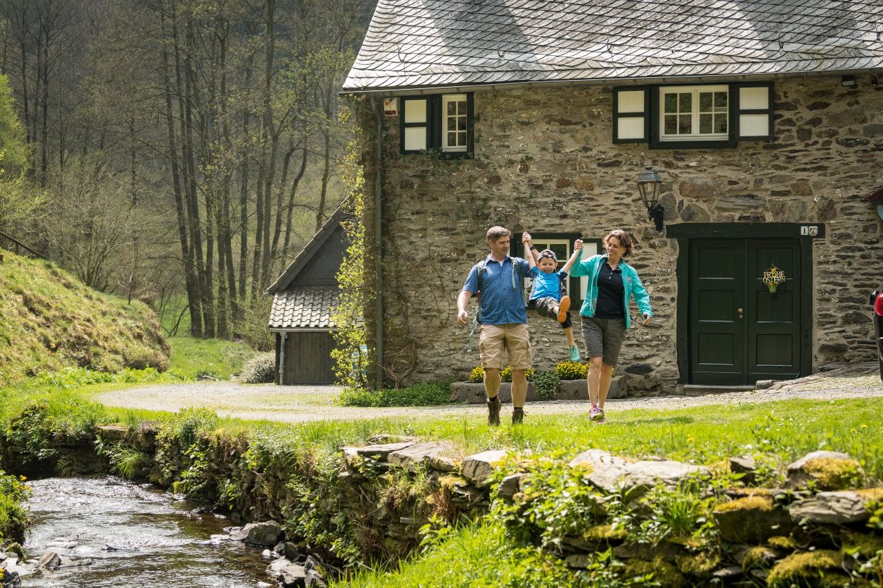 Bald schon erreichen Sie mit dem Holzbach das erste Fließgewässer und folgen dem quirligen Mittelgebirgsbach bis dieser in den Belgenbach mündet. Der Weg folgt von hier aus dem Bachtal in südliche Richtung und Sie durchwandern ein schönes naturbelassenes Mischwaldgebiet, das aufgrund des Vorkommens zahlreicher seltener Tier- und Pflanzenarten unter Naturschutz gestellt wurde. Dabei passieren Sie die Belgenbacher Mühle, die als ältester Getreidemahlwerkkomplex im Monschauer Land gilt.