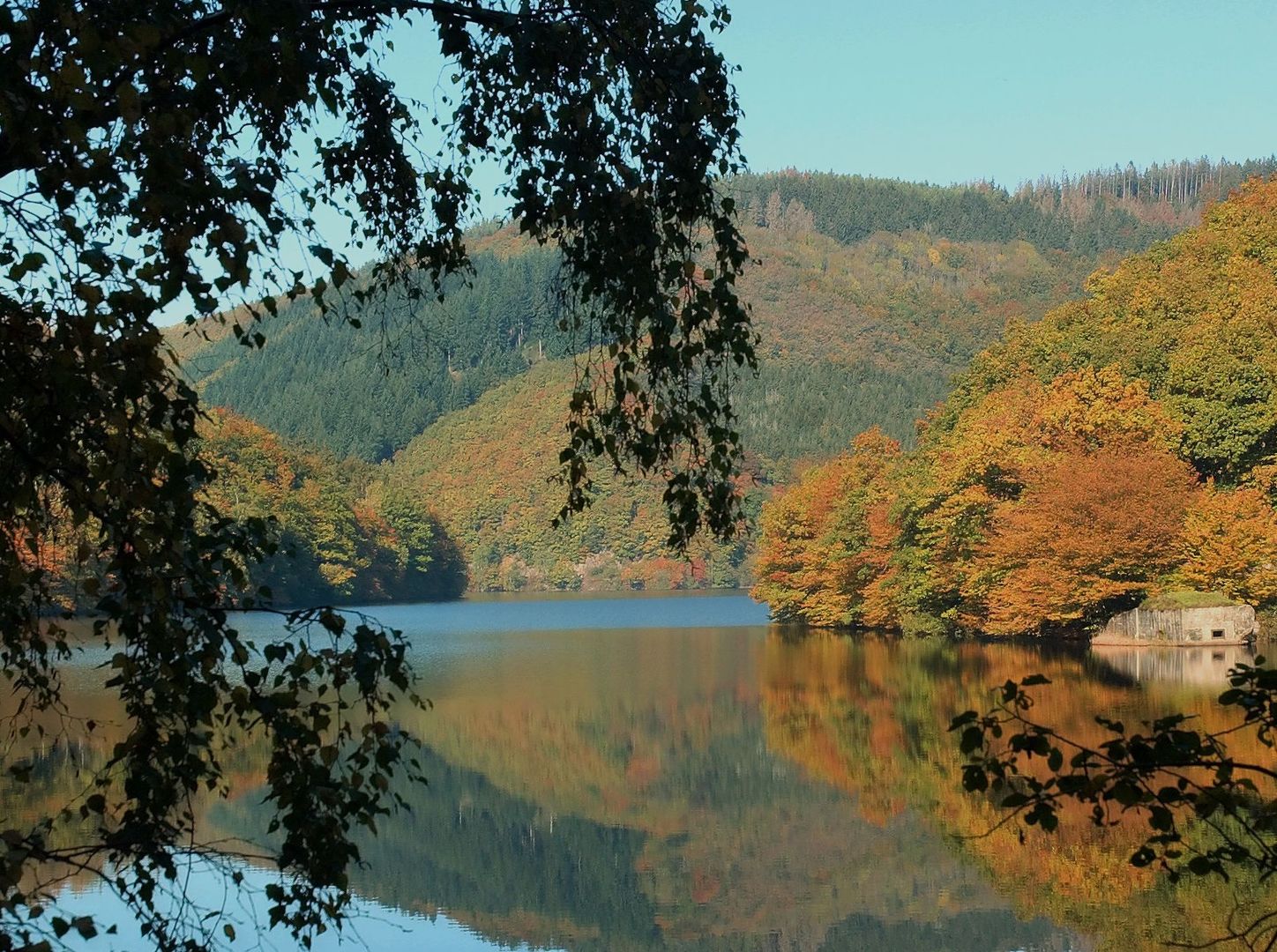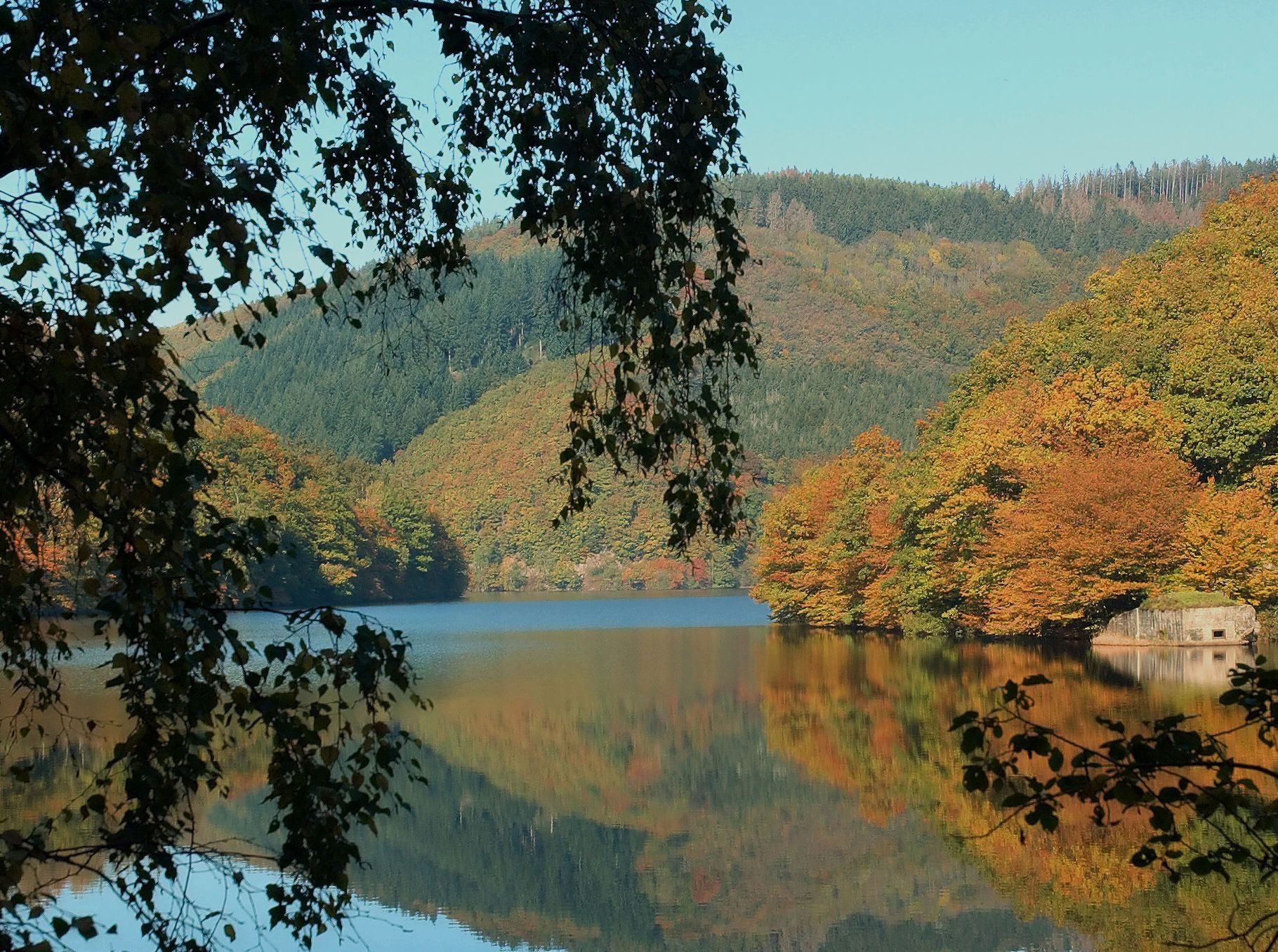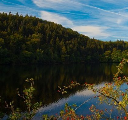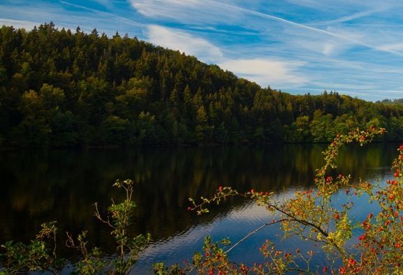 Nach Verlassen des Buhlert verändert sich die Landschaft hinter dem reizvollen am Nordrand der Rurtalsperre glegenen Eifeldorf Schmidt .Von hier aus führt die Tour entlang des Rurseeufers und gewährt mmer wieder atemberaubende Ausblicke auf den See und die umgebende Eifellandschaft. Naturszenarien voller Ruhe und Eleganz beeindrucken entlang der Seen auf Schritt und Tritt. Auf weiten Teilen der Strecke säumt dichter Laubwald das Ufer. Über Kraftwerksanlagen und Staumauern hinaus trifft man im Rahmen der Radtour auf ein einzigartiges Refugium für seltene Tier- und Pflanzenarten, da die Route die Randbereiche des Nationalpark Eifel als einzigen Nationalpark in Nordrhein-Westfalen durchquert. Hier sind Biber als Sympathieträger des Naturschutzes, aber auch Uhu und Wildkatze, Wespenbussard und Roter Milan, Bärwurz- und Narzissenwiesen oder Hirschzunge und Buchenfarn heimisch.