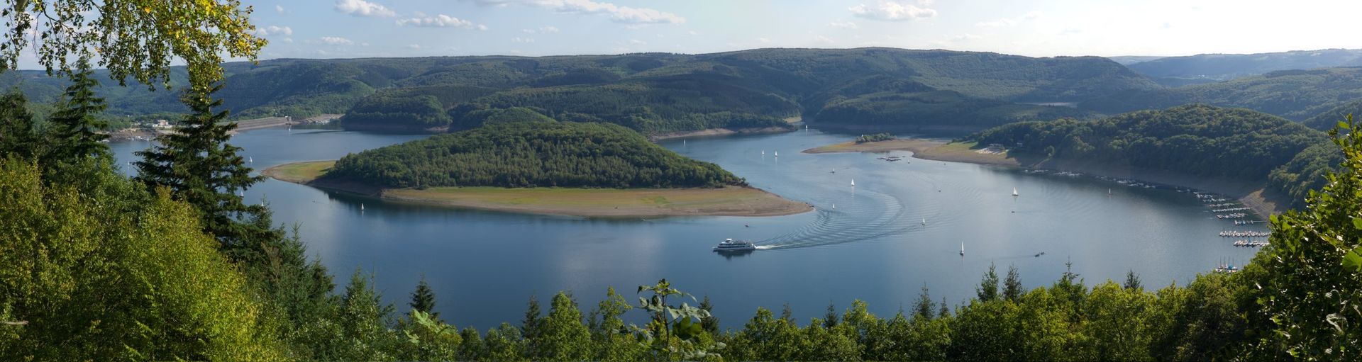 Majestätische Buchen, atemberaubende Ausblicke auf drei Stauseen und der raue Charme bizarrer Felsformationen: Die 230 Kilometer lange Eifel-Höhen-Route ist eine abwechslungsreiche und sportlich anspruchsvolle Rundtour durch und rund um den Nationalpark Eifel. Beim Radwandern auf den Höhen offenbaren sich atemberaubende Panoramablicke und entlang der Oleftalsperre und der Eifeler Seenplatte entdeckt man den besonderen Reiz des Wasserlandes. Auf der Urftseeroute führt die Fahrradtour dann ins Herz des Nationalparks Eifel.