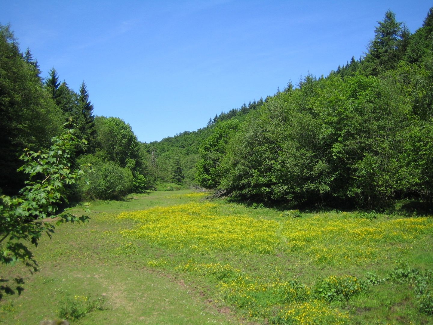 Ein kleines bronzefarbenes Schild weist Dich unterwegs auf eine Besonderheit hin: Du überquerst den 50. Breitengrad! Kurz darauf triffst Du auf die einzige Autobahn am gesamten Eifelsteig. Du unterquerst sie kurz und schon tauchst Du wieder ein ins Salmtal mit seinen farbenfrohen Bachwiesen.
