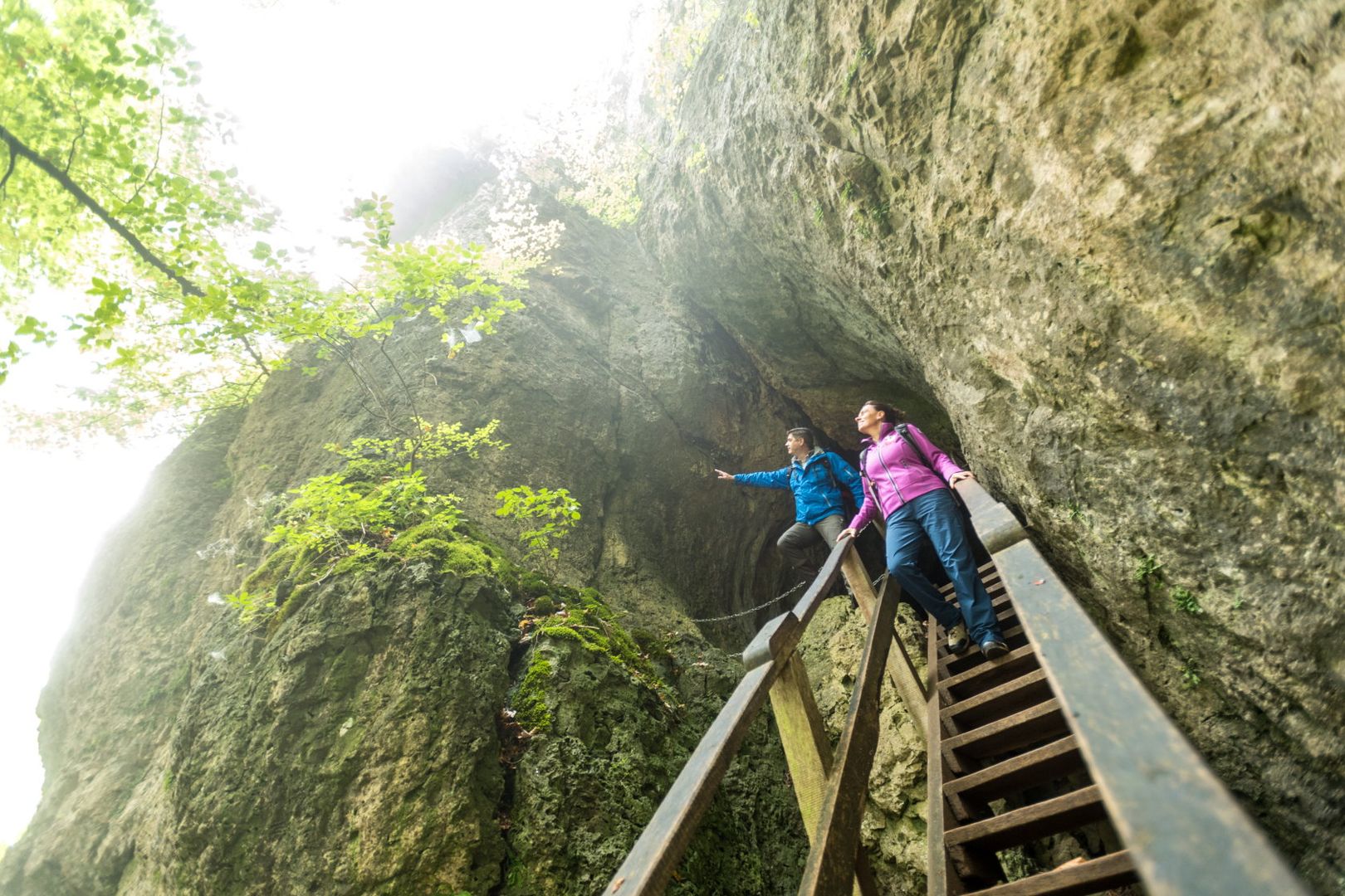 Nach den steilen Felsklippen kannst Du noch in die beeindruckende Buchenlochhöhle eintauchen. Wenig später kommt wieder Vulkanismus ins Spiel. Die merkwürdige Mulde "Papenkaule" hätte ein Vulkankegel werden sollen, doch der Lavastrom ließ sich durch Hohlräume ablenken und floss lieber bergab ins Tal der Kyll. Auch Du begibst Dich nun endlich auf einem steilen Pfad ins Tal und hast glücklich Dein Ziel Gerolstein erreicht.
