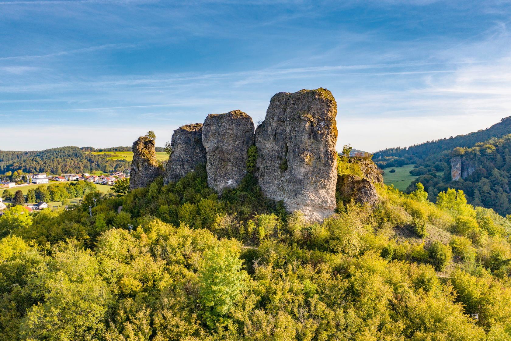 Am Start Deiner Wanderung in der Krimi-Hauptstadt Hillesheim fühlst Du Dich gleich ein wenig erhaben, denn Du stehst auf der historischen Stadtmauer von Hillesheim. Von dort hast Du einen wunderbaren Blick über die Stadt und in die Eifel-Landschaft. Kurze Zeit später begrüßt Dich das idyllische Bolsdorfer Tälchen mit seinem See, Kalksteinfelsen und dem Hillesheimer Bach der sich durch Wiesen schlängelt. Durch offene Landschaft wanderst Du nun weiter bis Du den Fluss Kyll überquerst und Dich dann Schritt für Schritt berghoch schraubst. An einem Treppengeländer im lichten Wald bleibt Dein Blick hängen - wohin führt diese Treppe? Du bist neugierig und steigst die Stufen hinab. Ein kalter Lufthauch strömt Dir entgegen und um Dich herum wird es dunkler. Du befindest Dich in einer der Mühlsteinhöhlen bei Roth. Sie entstanden durch den Abbau von Mühlsteinen mitten aus dem Vulkan Rother Kopf. Im Wald außerhalb der Höhle kannst Du sogar noch einen nicht fertig gestellten Mühlstein entdecken. Am Gipfel angekommen breitet sich unter Dir ein Blick ins Innere des Vulkans aus: Du schaust in einen Lava-Steinbruch. Vom Rother Kopf bietet sich Dir auch eine weite Aussicht in die hügelige Eifel, perfekt für eine Pause bevor es leicht bergab weiter zum Stausee Gerolstein geht. Du widerstehst der Versuchung, schon hier zum Etappenziel Gerolstein abzubiegen. Nun wird es richtig spannend: Nach der Vulkanlandschaft liegen jetzt die beeindruckenden Felsen der Gerolsteiner Dolomiten vor Dir. Einstmals (vor ca. 390 Mio. Jahren im Unterdevon) war hier ein warmes Meer! Hättest Du das gedacht? Die Dolomiten sind ein ehemaliges Korallenriff. Lass einfach Deiner Fantasie freien Lauf und Du wirst es erkennen.
