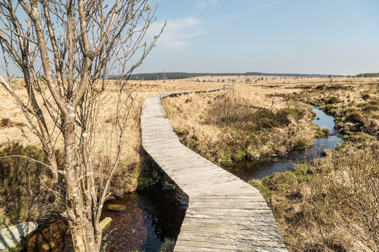 Urwüchsig, unberührt und wild präsentiert sich uns die Moor- und Heidelandschaft des Hohen Venns. So kann man sie sonst nur in weit nördlicher gelegenen Breitengraden finden. Vor etwa 10.000 Jahren, zum Ende der letzten Eiszeit, bildeten sich auf den kargen, wasserstauenden Böden die hier für die Landschaft typischen Hochmoore. Diese prägen noch heute Teile der gewaltigen Hochfläche des Venns und lassen Dich ihr seltenes urzeitliches Flair erleben.